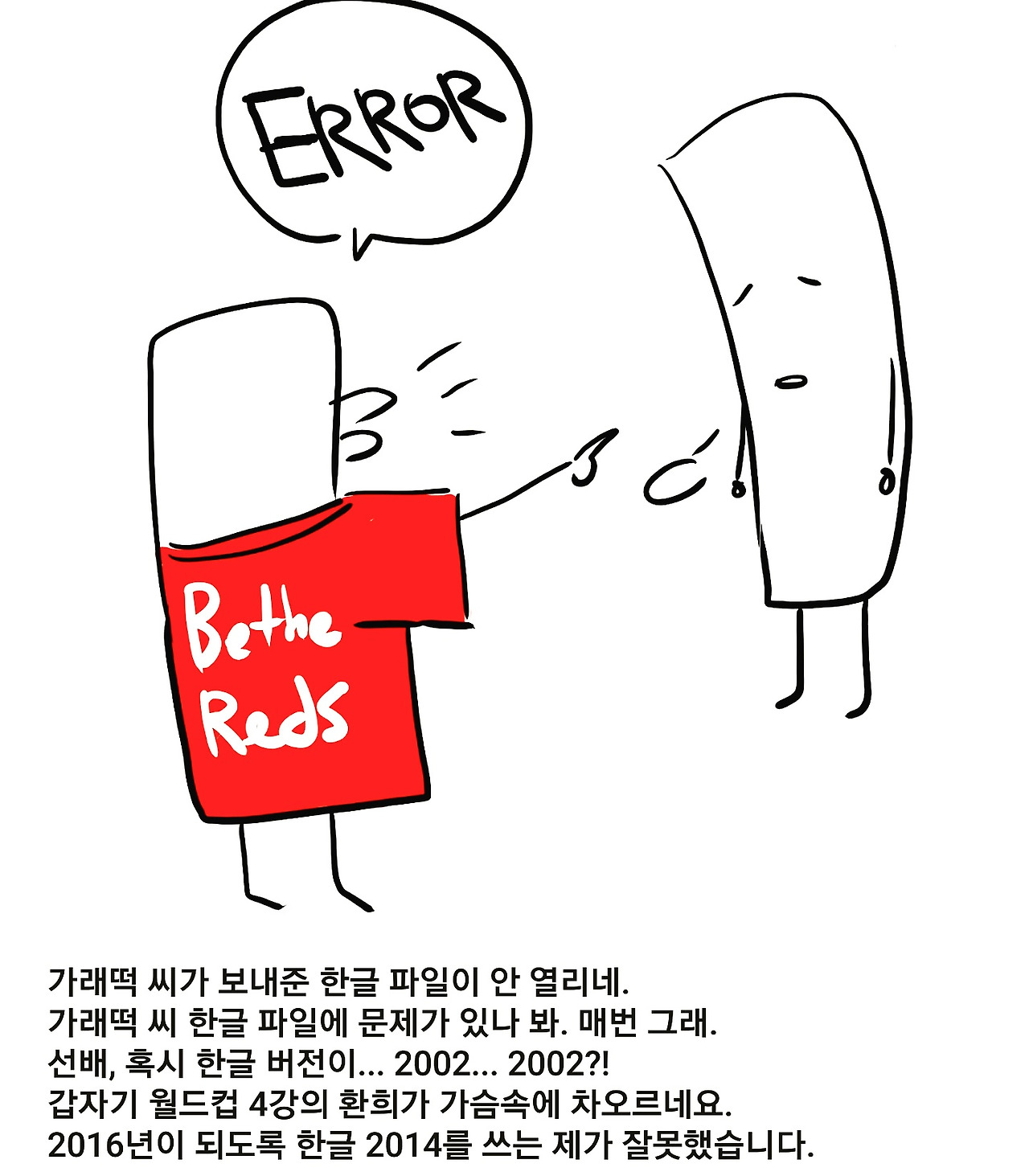 가래떡 씨 한글 파일에 문제가 있나 봐. 매번 그래.