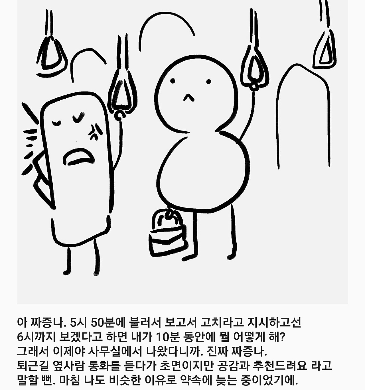 퇴근길 옆사람 통화를 듣다가 초면이지만 공감과 추천드려요 라고 말할 뻔.