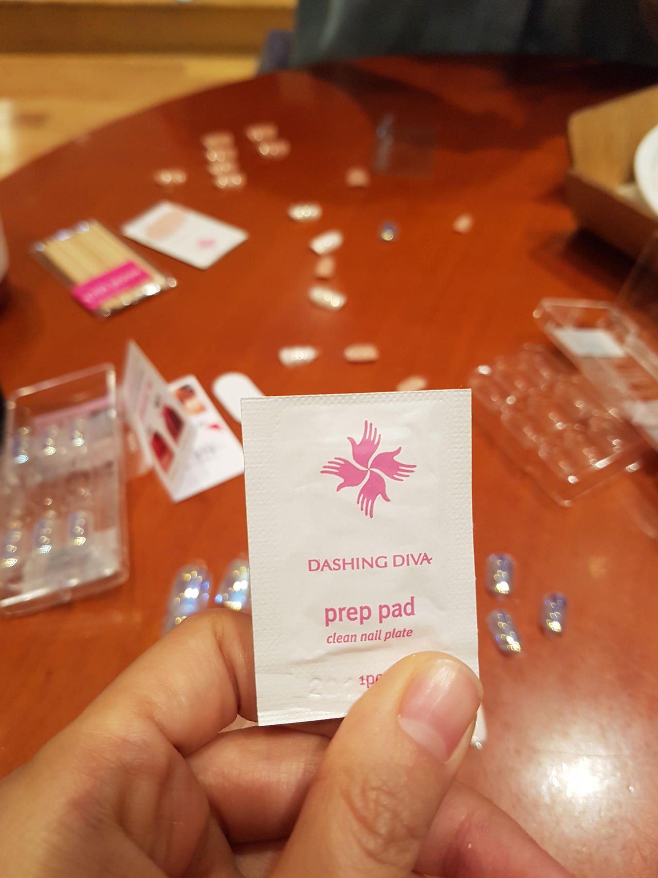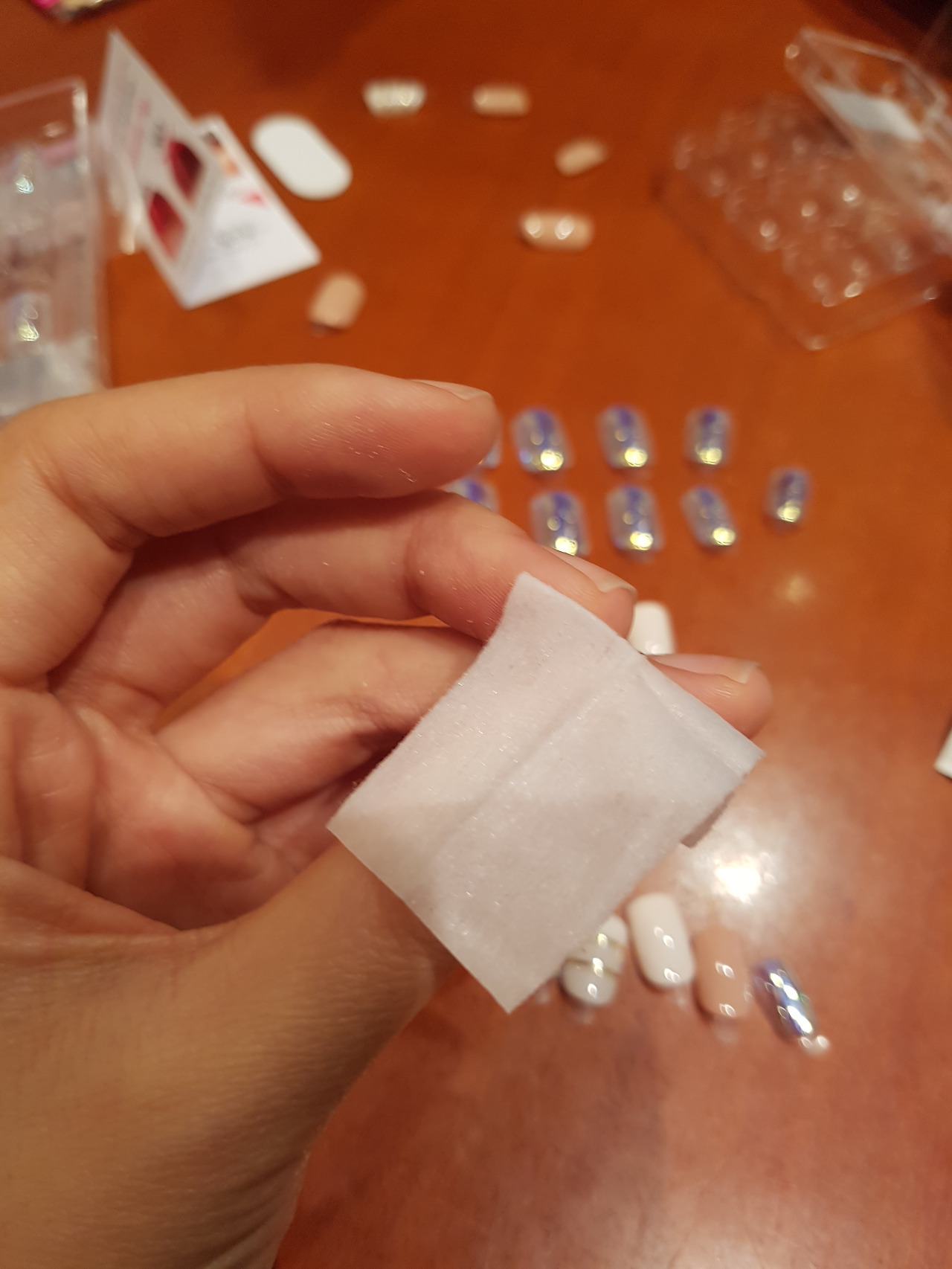 프렙 패드라는 게 아세톤 묻은 화장솜이다. 집에서 대충 화장솜에 아세톤 퍽퍽 촵촵해서 손톱의 유분기를 제거한 후 내 손톱에 맞는 팁을 찾아서 붙여주면 작업 끝.