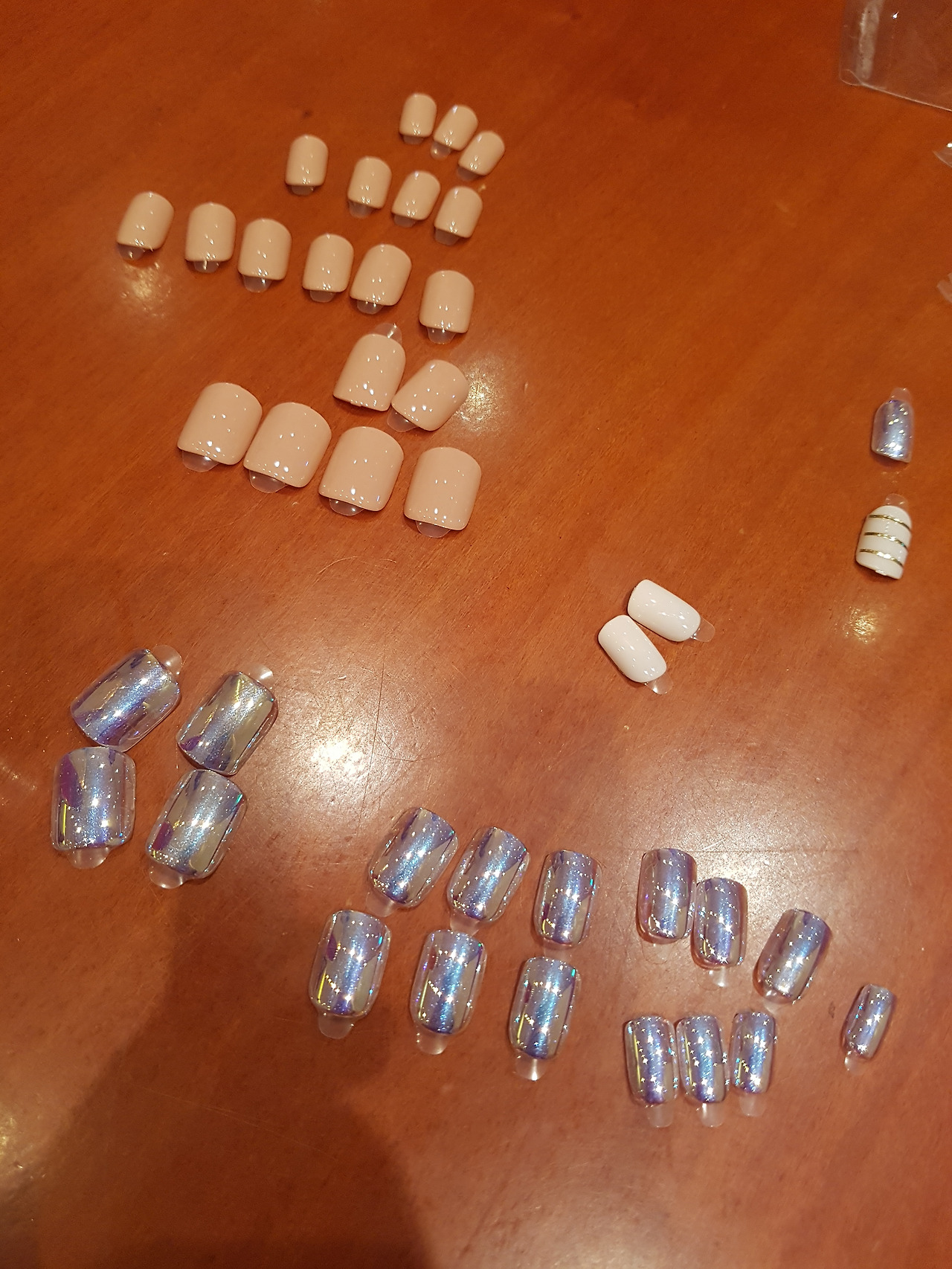 손톱 크기에 맞는 팁을 하나하나 뒤적이며 찾는 수고로움을 덜고자 작업 시작 전에 크기대로 분류해 뒀다. 특히 친구와 나는 두 통을 가지고 나눠서 붙이기로 했기에 이 작업은 필수다. 한 사람이 같은 크기의 팁을 다 가져가 버리는 불상사가 생기면 안 되니까.