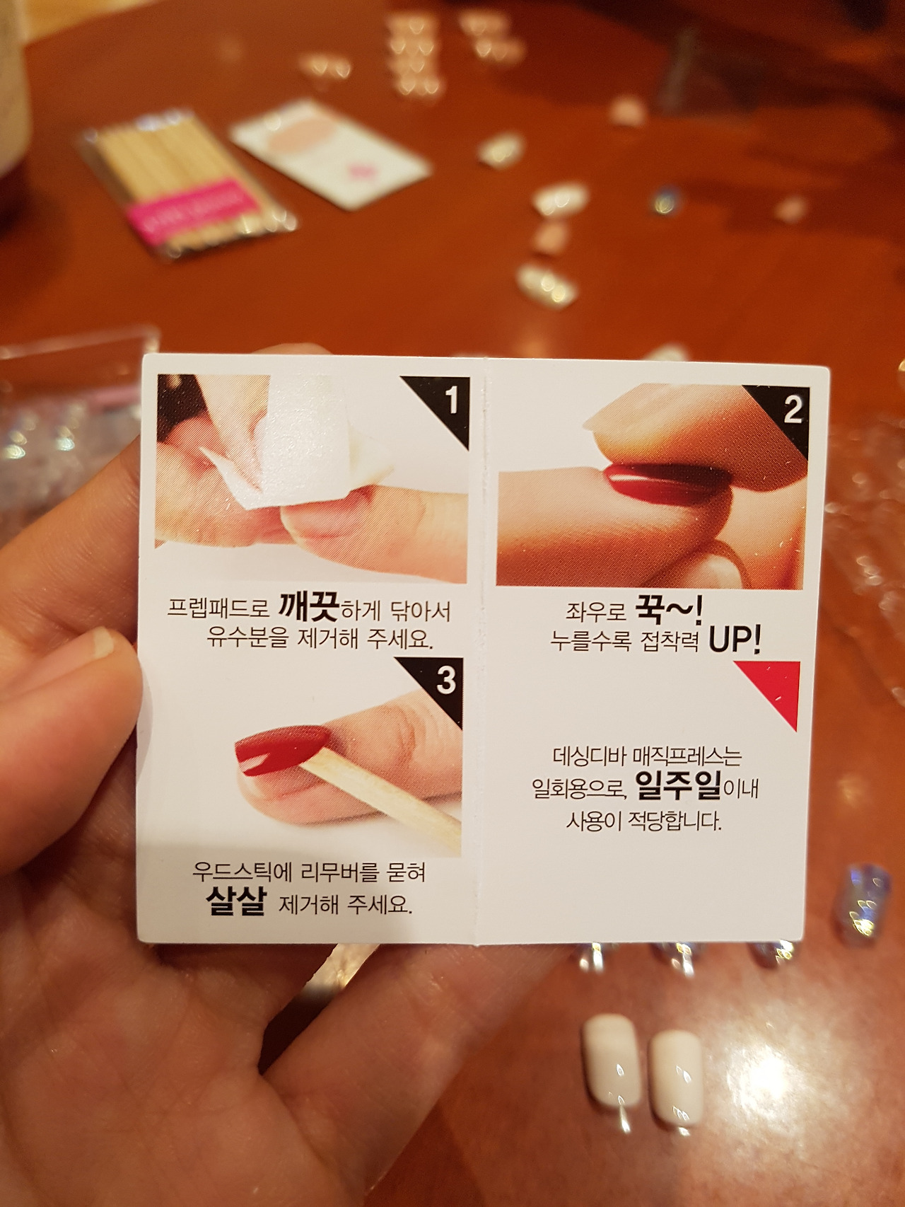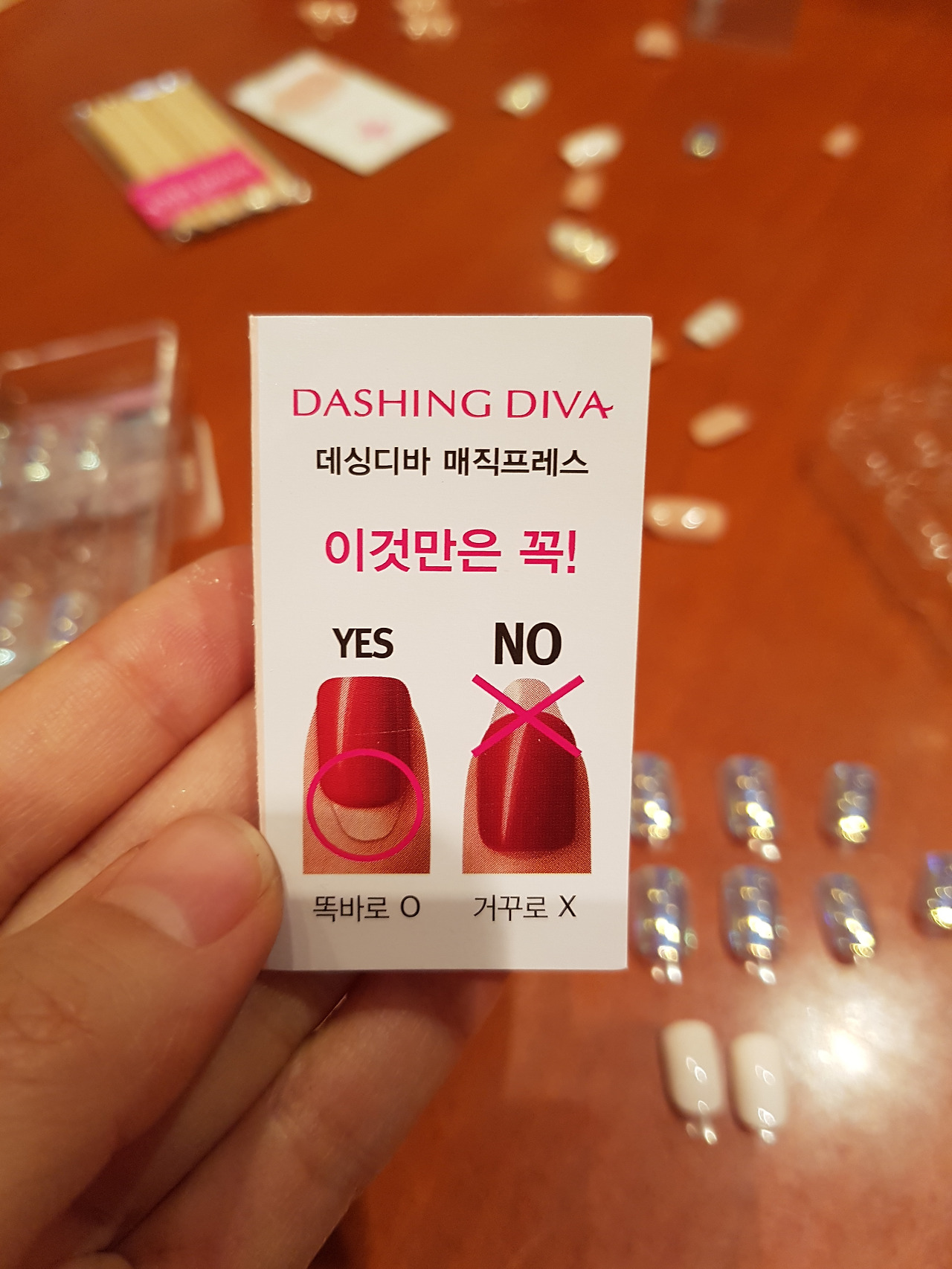 이것은 '데싱디바 매직프레스'라는 물건이다. 프레스 온 젤 매니큐어. 아트가 그려진 인조손톱. 젤 네일의 신세계를 접한 이래로 한동안 꾸준히 가산을 탕진해오던 내게 한 줄기 빛이 되어준 아이템이다. 요즘 이곳저곳에서 광고가 많이 나온다.