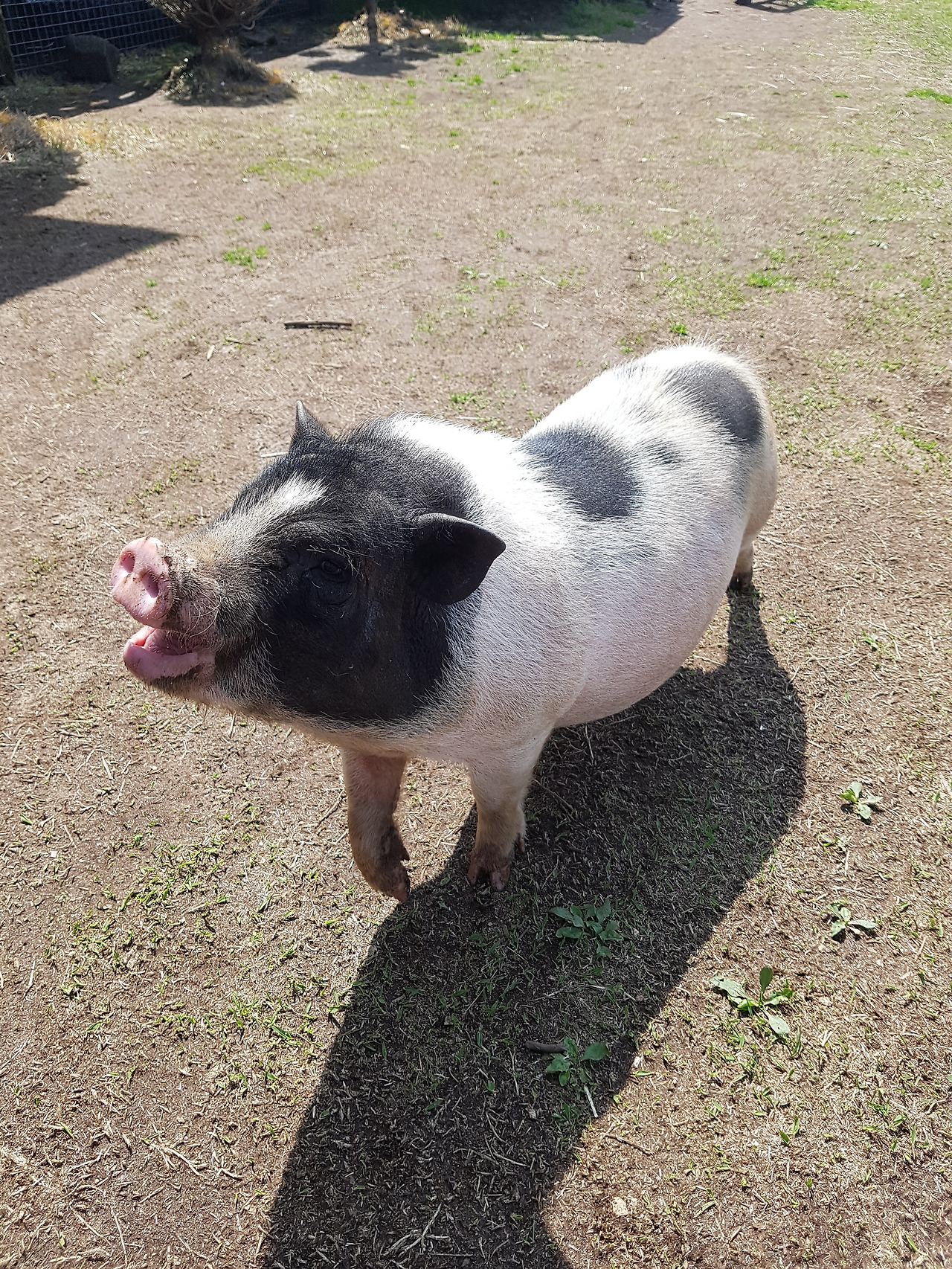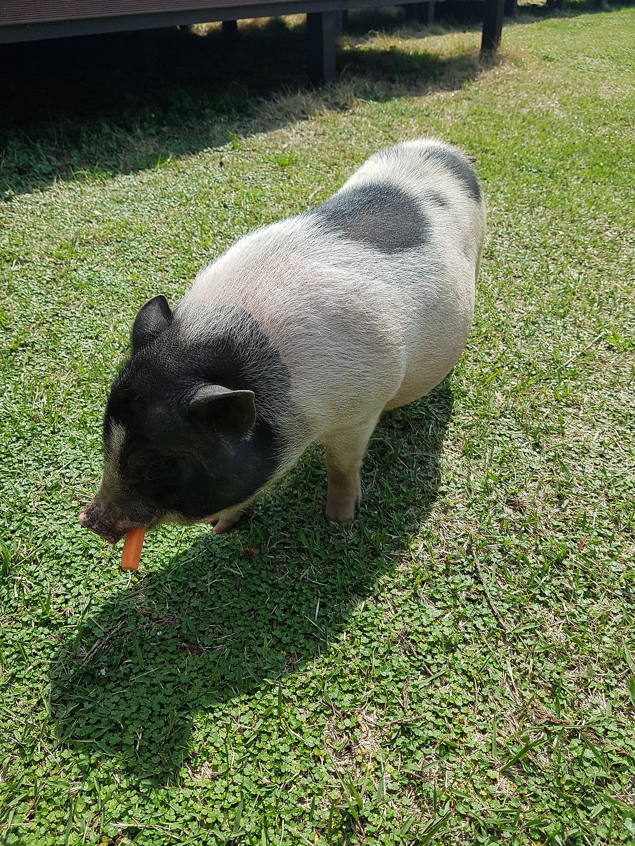 들판에 풀어놓은 돼지 한 마리는 열심히 제 당근을 받아먹었죠.