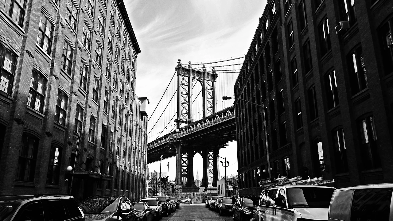 뉴욕 덤보(DUMBO)에서 보이는 맨해튼 브리지. MBC 예능프로그램 '무한도전' 멤버들이 촬영해서 더 화제가 된 곳이다. 한국인 관광객 외에도 다양한 국가의 관광객들이 이곳에서 사진을 찍는 모습이었다.
