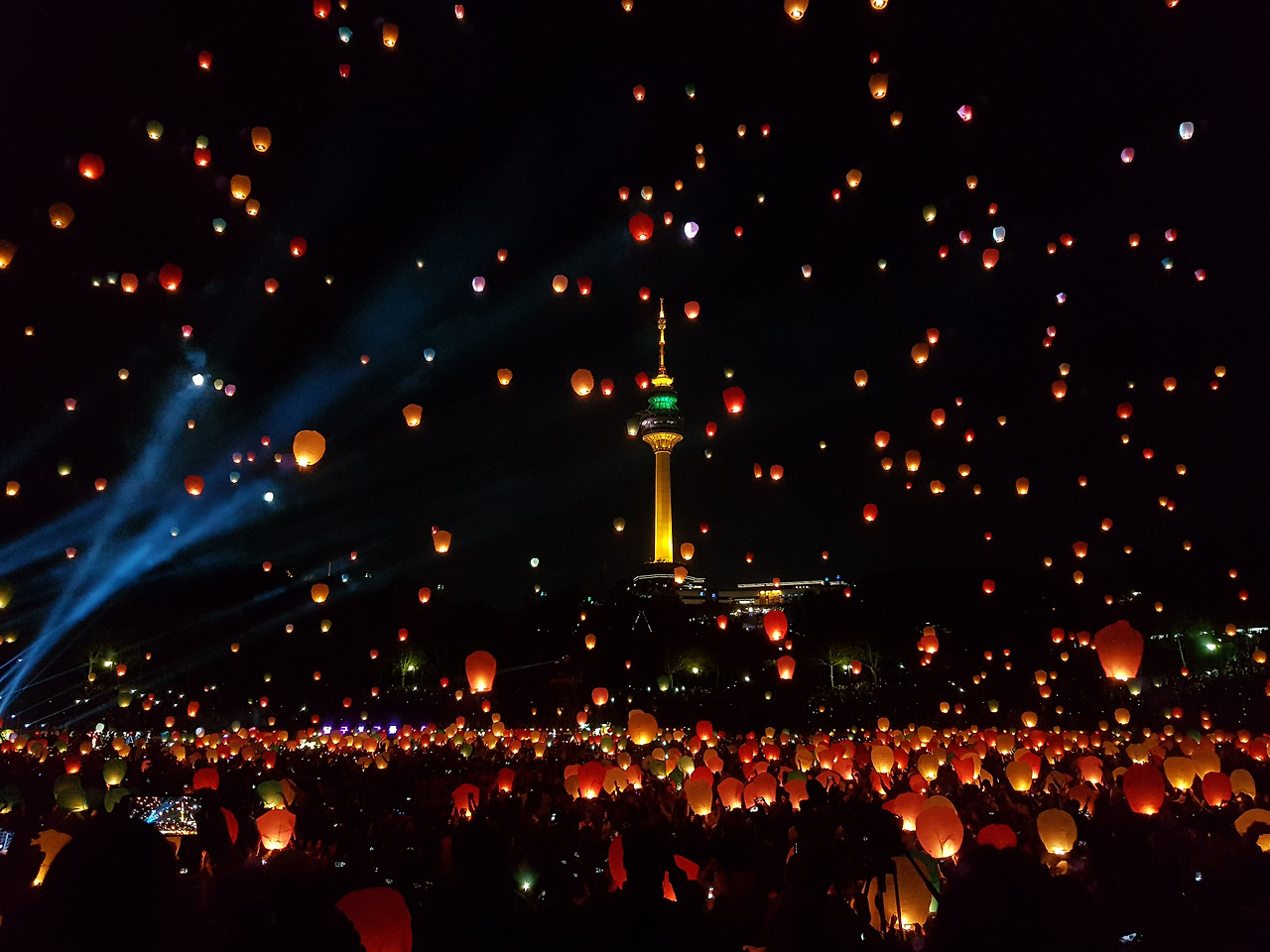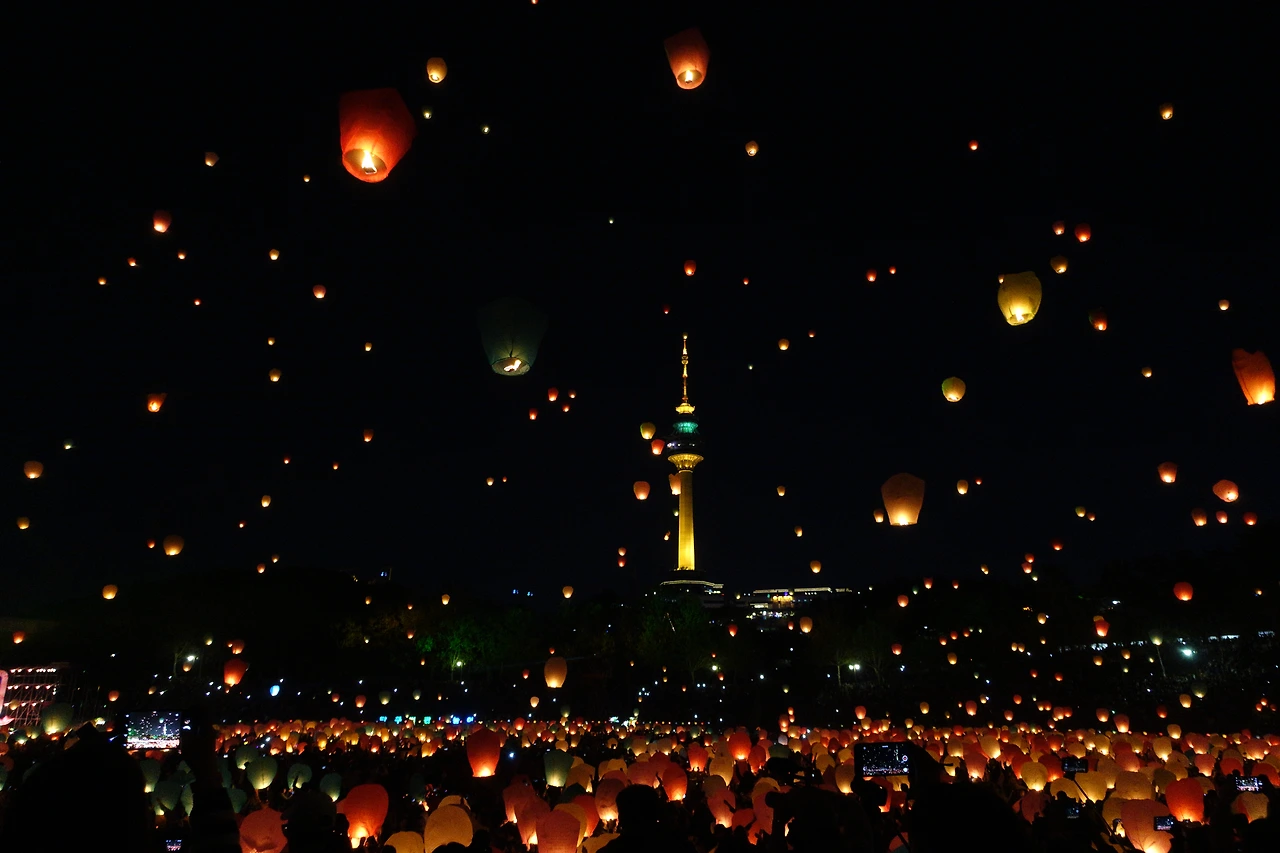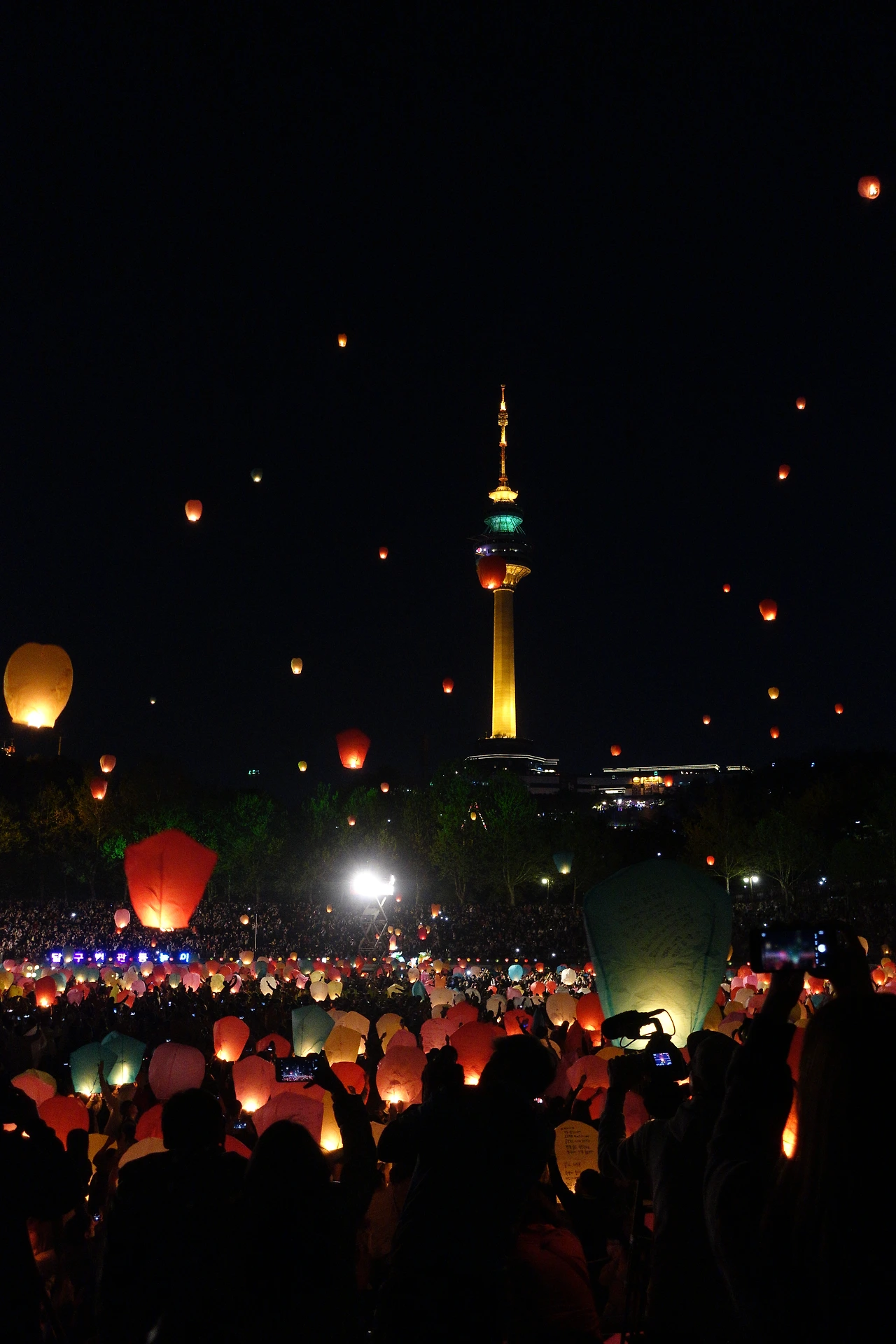 대구 두류공원 야구장에서 2500여 개의 풍등이 한꺼번에 날아가 밤하늘을 수놓는 장면이 단연 압권.