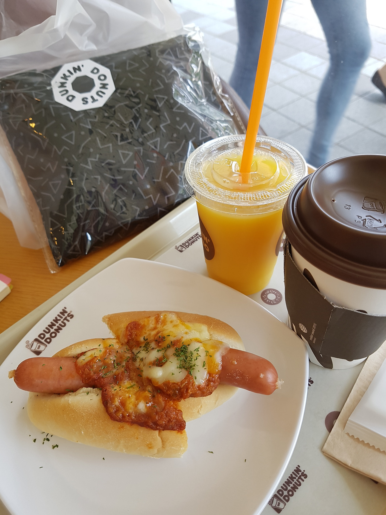 그렇게 오늘의 점심은 던킨도너츠 칠리 소시지 핫도그 콤보와 친구들로 정했다.