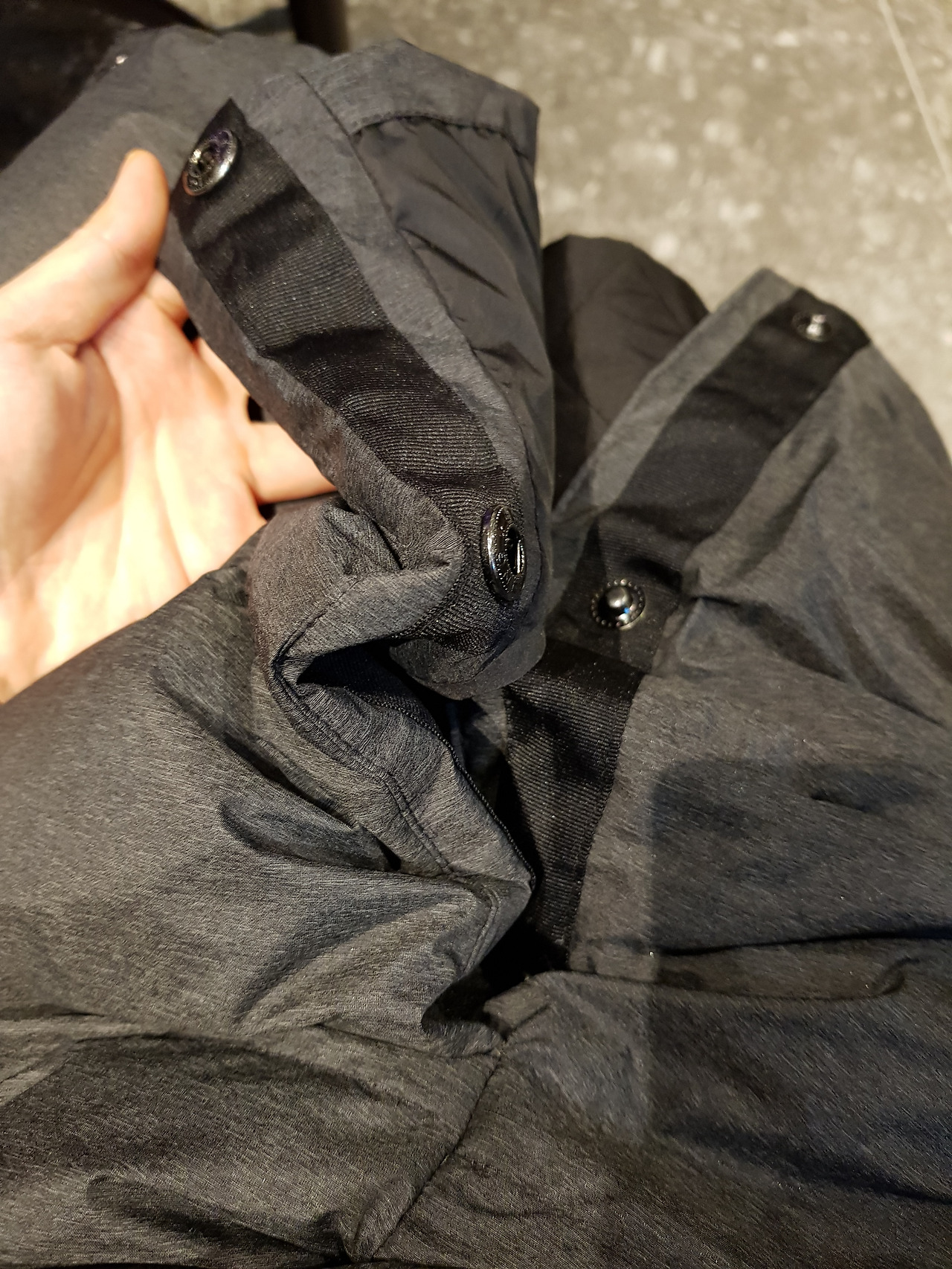 롱패딩들이 입으면 뚠뚠해지고 활동성이 떨어지는데 아랫단에 단추가 있어서 앉거나 걸을 때 좀 더 편안하게 입을 수 있도록 디자인돼 있었다. 하지만 추우니까 열지 말아야지.
