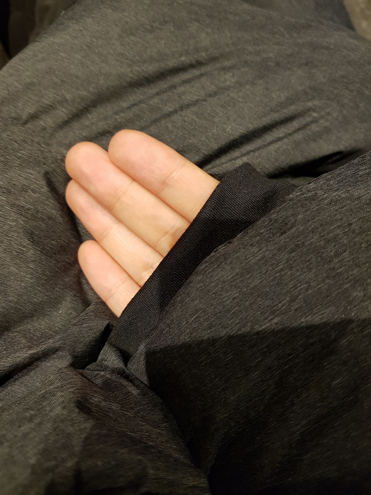 일단 엄청 가볍고 뜨시다. 마감도 생각보다 좋다. 정가인 14만 9000원이라고는 생각하기 어려운 퀄리티. 그전에 구스다운 패딩을 살까 싶어 찾아봤는데 제대로 된 걸 사려면 최소 20만 원 중후반대는 되어야 했다. 그런데 15만 원 주면 1000원이 남아서 빼빼로나 허쉬 초콜릿 드링크를 사 먹을 수 있다니 좋잖아? 속주머니도 있다.