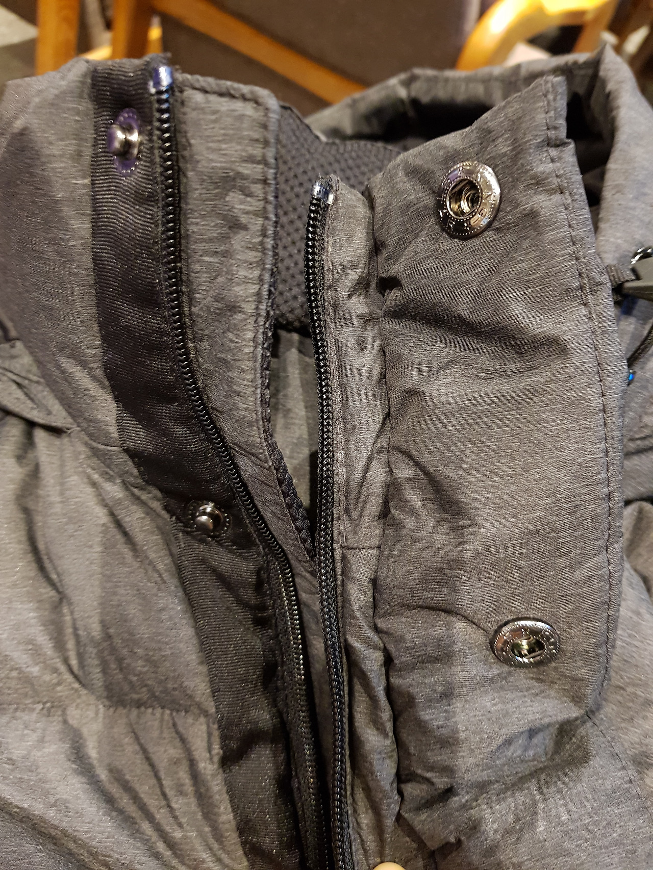 지퍼로도 잠글 수 있고, 단추도 있다. 패딩에 밸크로가 달려있는 디자인을 별로 좋아하지 않는데 이건 단추라서 더 마음에 들었다. 일단 찍찍이는 입고 벗을 때 찍찍 소리가 나고 먼지가 잘 붙고 니트와 혼연일체 되어 옷을 망치는 경우가 많아서.