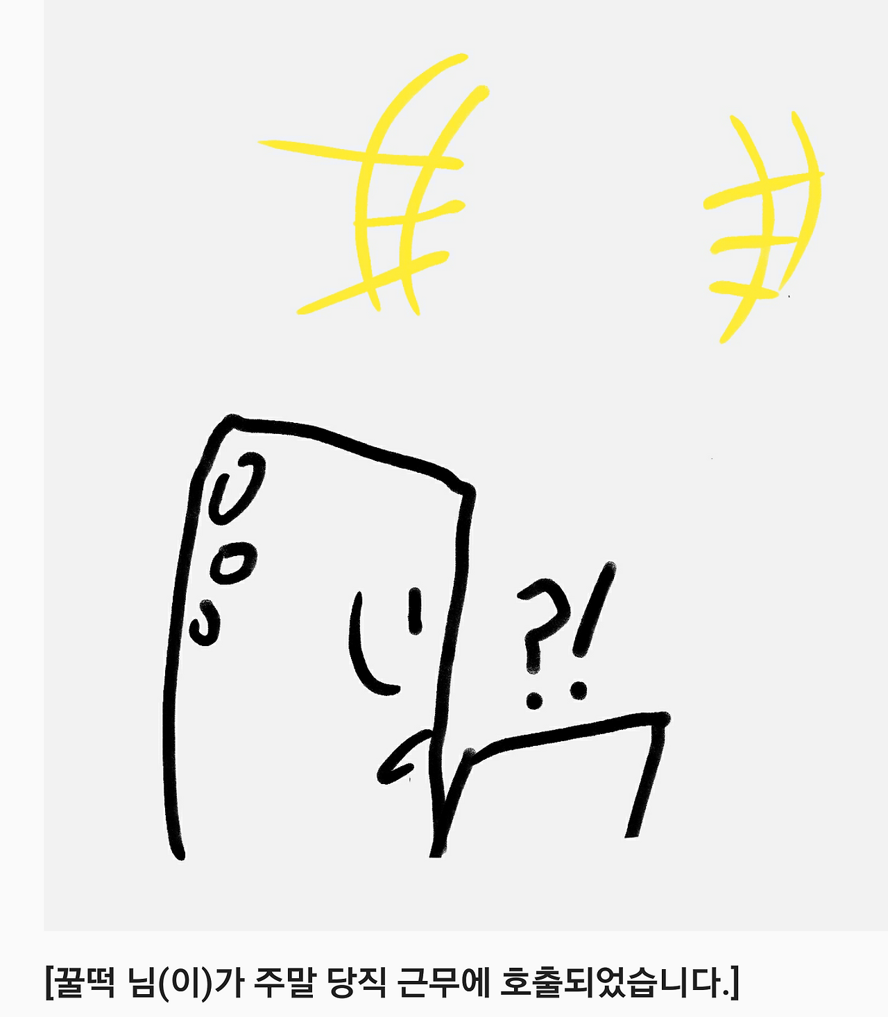 [꿀떡 님(이)가 주말 당직 근무에 호출되었습니다.]