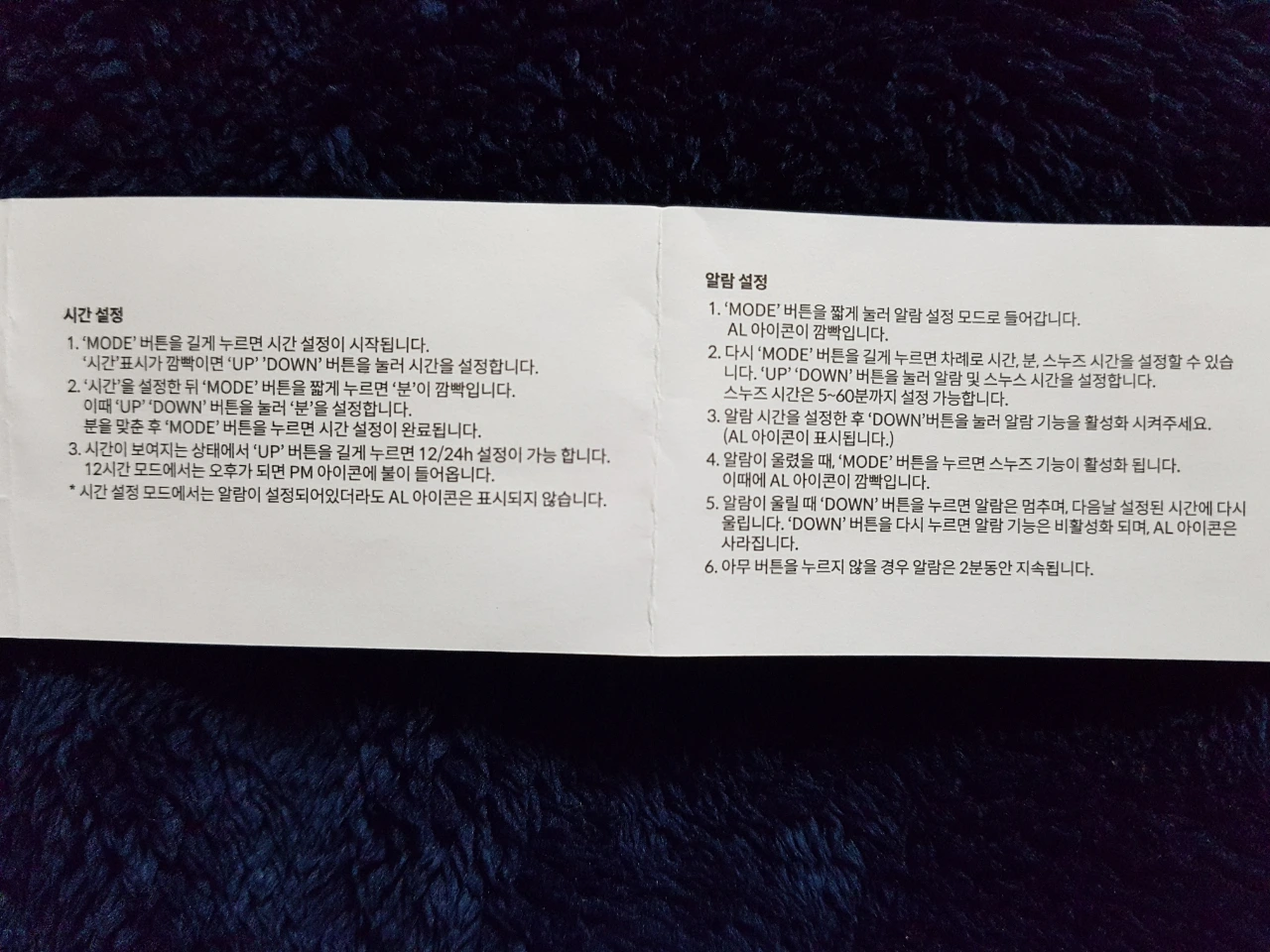 버튼은 이게 전부다. 모드를 길게 누르고 업 버튼과 다운 버튼으로 현재 시각과 알람 시각을 설정하면 된다.