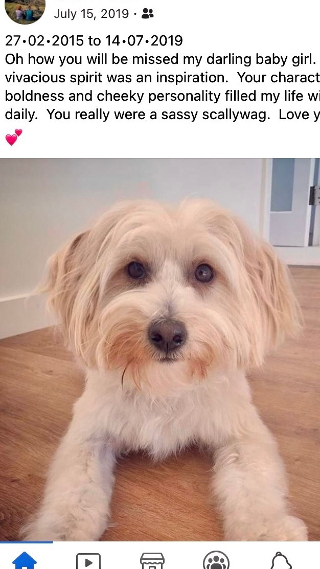 그 강아지 중 하나가, 비오는 날 잠깐 주인(전 직장동료)이 문을 열어놓은 사이에 도로에서 차에 치여 사고로 죽는 일이 있었다. (사진은 그녀의 페이스북 포스팅) 그 동료는 이틀동안 출근하지 못했고, 회사에서는 그녀를 위로하는 큰 꽃다발을 보내주었다. 그녀는 이후 돌아가신 어머니를 추모하며 뉴질랜드 자전거 종단을 해낸, 내가 본 가장 강인한 사람 중 한 명이었지만, 그 강아지 사고 이후 그녀의 얼굴을 잊을 수 없다. 그 표정은 가족을 잃은 아픔이었다.