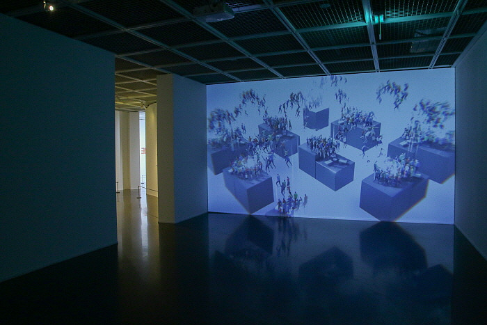 황선태 작가와는 달리, 유고 나카무라의 <Humanity>는 우리가 흔히 '아침' 하면 떠올리는, 일상의 불쾌함을 재치 있는 플래시 영상에 담아냈다. 물리학을 전공한 작가는 마치 로봇처럼 걸어 다니는 수많은 사람이 절벽을 만나 떨어지거나, 공기의 흐름에 부딪혀 튀어 오르는 모습을 통해, 무의미하고 반복적인 일상 속 물리학의 법칙을 표현한다. 그러나 우리가 사회의 부품처럼, 프로그램된 기계처럼 살아갈지언정 세상의 '나'는 오로지 하나뿐이다. 작가는 영상 속 사람들의 옷 색깔을 달리함으로써 이 진부하고도 명확한 진리를 놓치지 않는다. <Humanity>를 '좀비들의 행진'쯤으로 불러도 무방할 것 같지만, 어쨌거나 세상에 하나뿐인 좀비다.