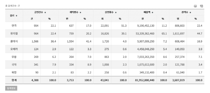 KOPIS(공연 예술 통합전산망) 2018년 통계자료