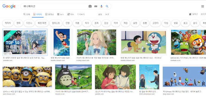 구글에 '애니메이션'을 검색하면 나오는 이미지