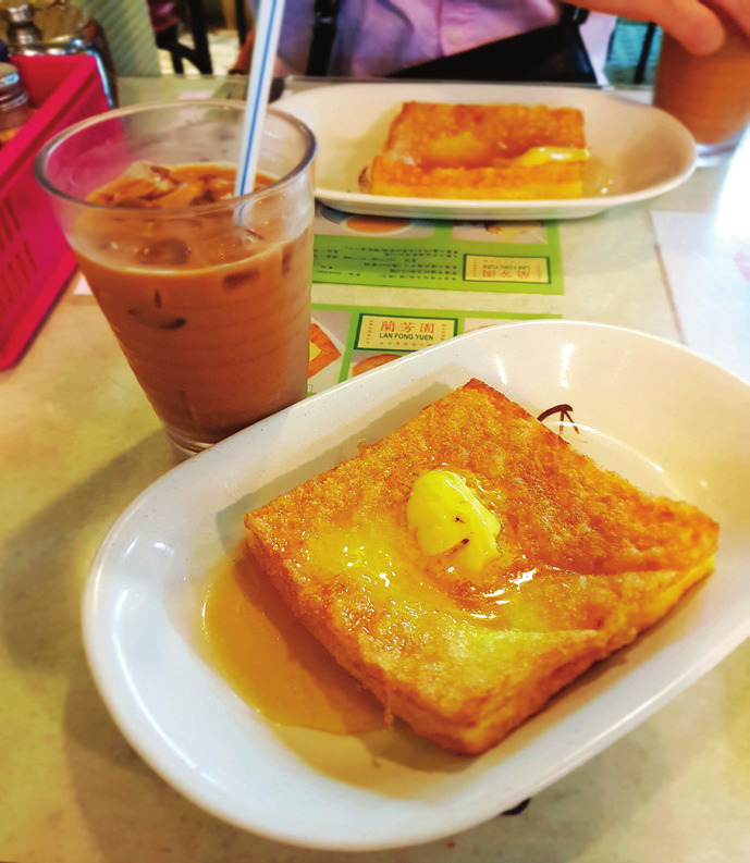 딘타이펑은 한국인이 워낙 많이 찾다 보니 한국어 메뉴판이 따로 있었다. 샤오롱바오의 가격은 6개에 60홍콩달러, 새우 돼지고기 군만두는 6개에 82홍콩달러였다. 식사를 마치고 명품거리를 구경하다 버터 토스트와 밀크티 맛집인 ‘란퐁유엔’이 청킹맨션 지하에 있다고 해 다시 청킹맨션으로 돌아왔다. 이곳은 저우룬파의 단골집으로 알려져 있다. 케이블TV방송 tvN 예능프로그램 ‘짠내투어’ 홍콩편에도 나왔다. 딤섬을 먹은 지 30분도 되지 않았지만 1인 1토스트 ‘석션’이 가능한 위장의 잠재력에 스스로 놀랐다. 합석이 기본이고 미니멈 차지가 있는 데다 서비스 역시 좋은 편은 아니었으나 운 좋게 2인석에 앉은 덕에 여유롭게 식사할 수 있었다. 버터 토스트의 달콤하고 짭짤한 맛은 귀국해서도 자꾸 생각이 났다. 밀크티는 너무 달지 않고 홍차향이 진해 좋았다. 버터 토스트 가격은 25홍콩달러, 밀크티는 23홍콩달러.