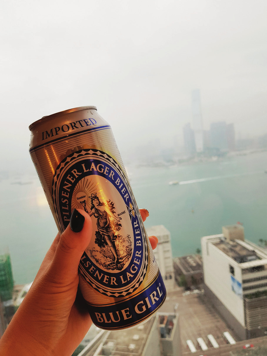 그렇게 구경하다 보니 여행지에서 빠질 수 없는 ‘그 시간’이 왔다. 바로 ‘술 타임’. 홍콩에서 인기 있는 술을 맛보기로 하고 편의점으로 향했다. 편의점에서 관광객이 많이 사는 술은 ‘블루걸’과 ‘잭콕’. 블루걸은 한 캔에 15.5홍콩달러, 잭콕은 25홍콩달러였다. 딱 하나씩만 사서 맛보려는데 친구가 “어차피 2+1이면 다 먹고 갈 수 있잖아”라고 했다. 결국 블루걸 3캔을 사서 마지막 날까지 알뜰하게 다 마셨다. 무난한 필스너 맛이었다. 블루걸은 특히 한국 오비맥주에서 만드는 맥주인데 한국에서는 찾아볼 수 없는 점이 독특했다. 잭콕은 잭다니엘에 콜라를 섞은 제품으로 국내에서도 판 적이 있다고 한다. 내 입에는 너무 달아 한 병을 다 비우지 못했다.