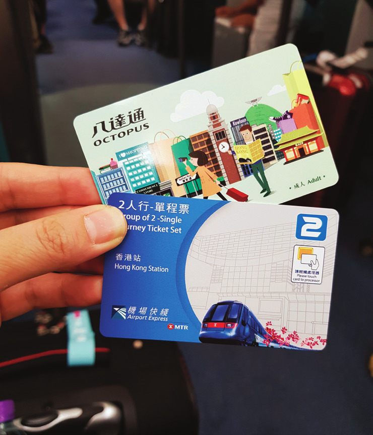 홍콩국제공항에서 숙소까지 가는 방법은 여러 가지다. 빠르고 비싼 순으로 나열하면 택시, AEL(공항고속철도), 버스, 지하철 순이다. AEL은 홍콩 티머니, 캐시비 같은 ‘옥토퍼스 카드’로 결제할 수 있다. 사용법은 티머니와 유사하다. 보증금을 내고 카드를 발급 받아 충전한 후 체크카드처럼 지하철, 버스, 택시, 트램 등 교통수단과 편의점에서 사용하면 된다. 충전 단위는 50홍콩달러, 100홍콩달러. 남은 돈과 보증금은 카드를 반납하면 돌려받을 수 있다.