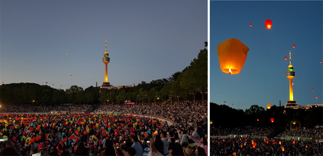 관등놀이는 신라시대부터 이어져 조선시대, 현재까지 전해 내려오는 전통문화축제다. 초파일 관등놀이 마당과 체험 프로그램, 민속놀이, 문화공연 등의 콘텐츠로 구성된 축제의 백미는 소원 풍등 날리기. ‘피켓팅(피의 티켓팅)’에 성공한 기자가 5월 19일 오후 두류공원 야구장에서 열린 소원 풍등 날리기 현장을 카메라에 담았다. 오랜 기다림 끝에 맞이하는 일몰, 그리고 빛을 발하며 날아오르는 풍등을 보면 몇 시간씩 바람을 맞아가며 기다린 피로감이 한 방에 씻기는 느낌이 든다. 마치 ‘라푼젤’의 주제가 더빙판 가사처럼. 빛이 드디어 보인다, 마치 안개가 걷힌 듯.