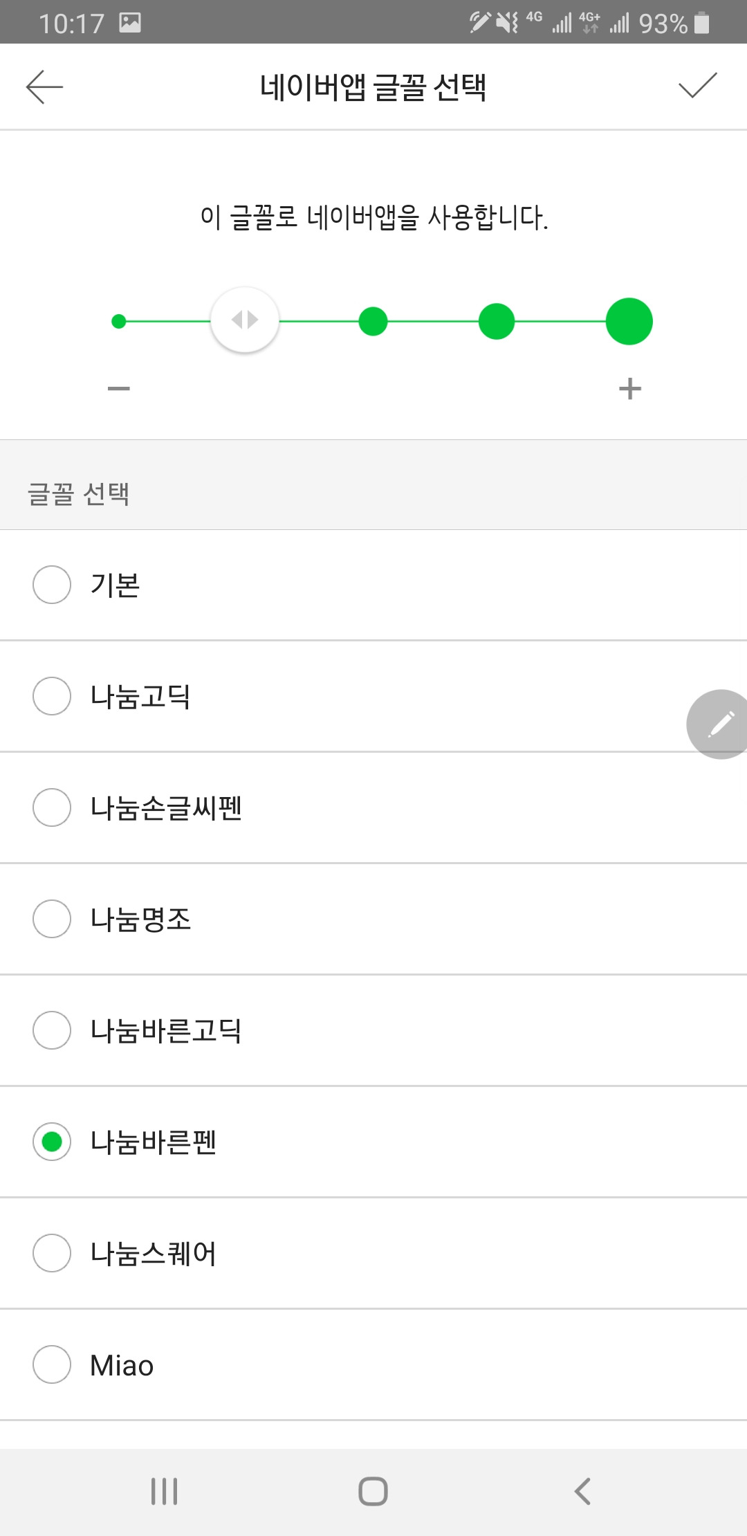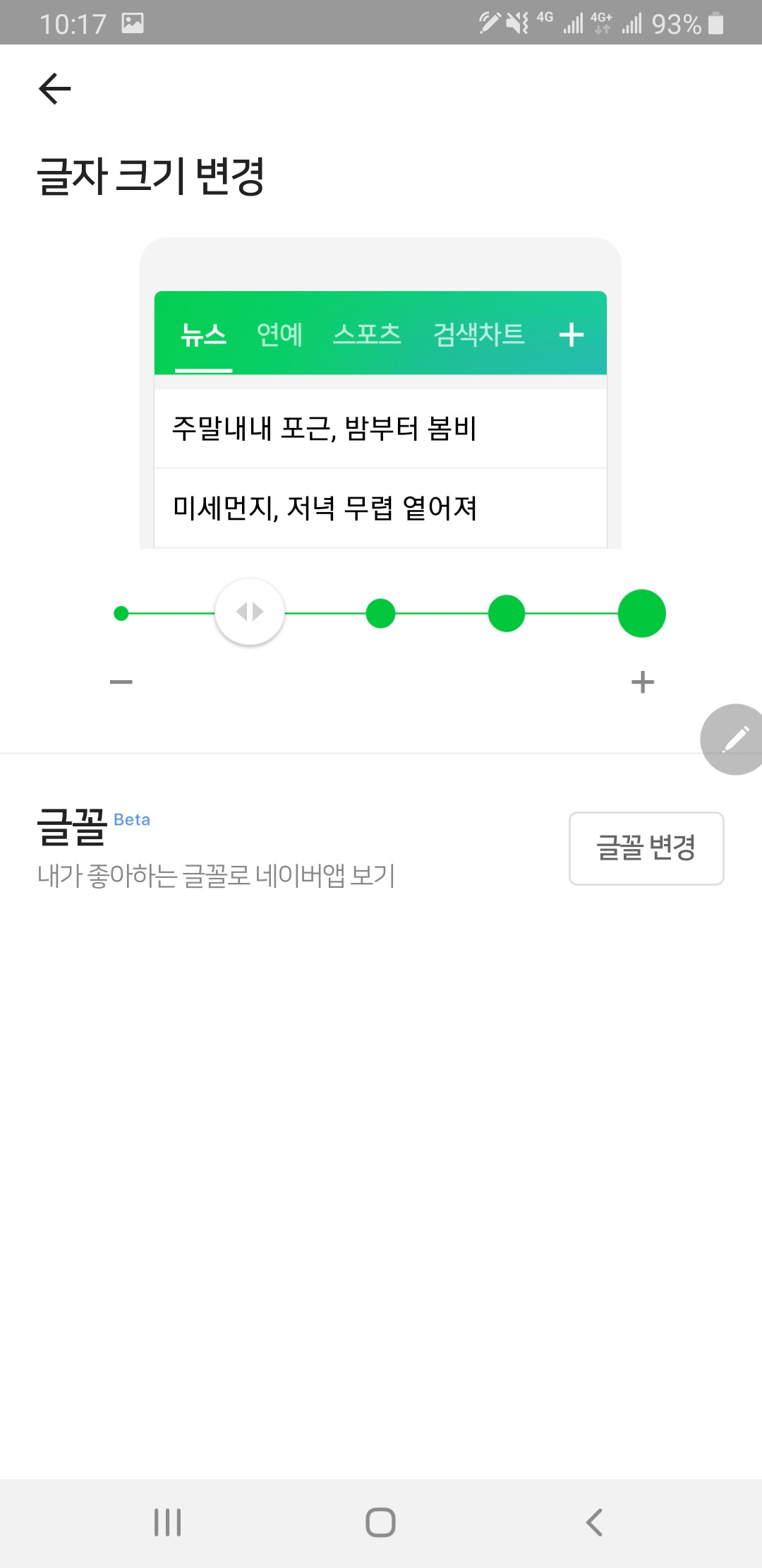 안드로이드폰 사용자라면 네이버 앱 내 글꼴은 스마트폰에서 설정한 글꼴과 다르게 설정할 수 있습니다. 이 설정은 새로운 네이버 메인화면이든, 기존 네이버 메인화면이든 둘 다 적용됩니다.