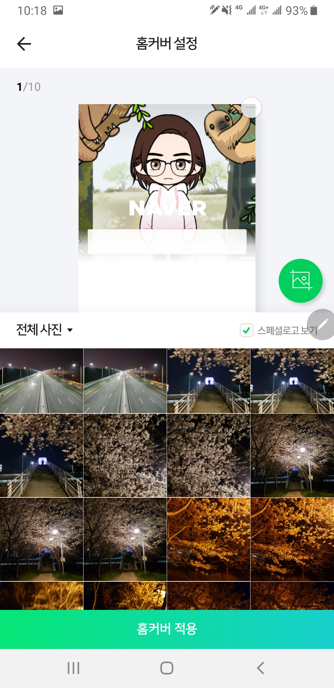다만 개편된 네이버 앱 메인 화면에서만 설정 가능한 기능도 있습니다. 바로 홈 커버를 원하는 사진이나 그림으로 바꿀 수 있는 기능이에요. 이렇게 홈 커버에 원하는 그림이나 사진을 넣고 확인을 누르면...