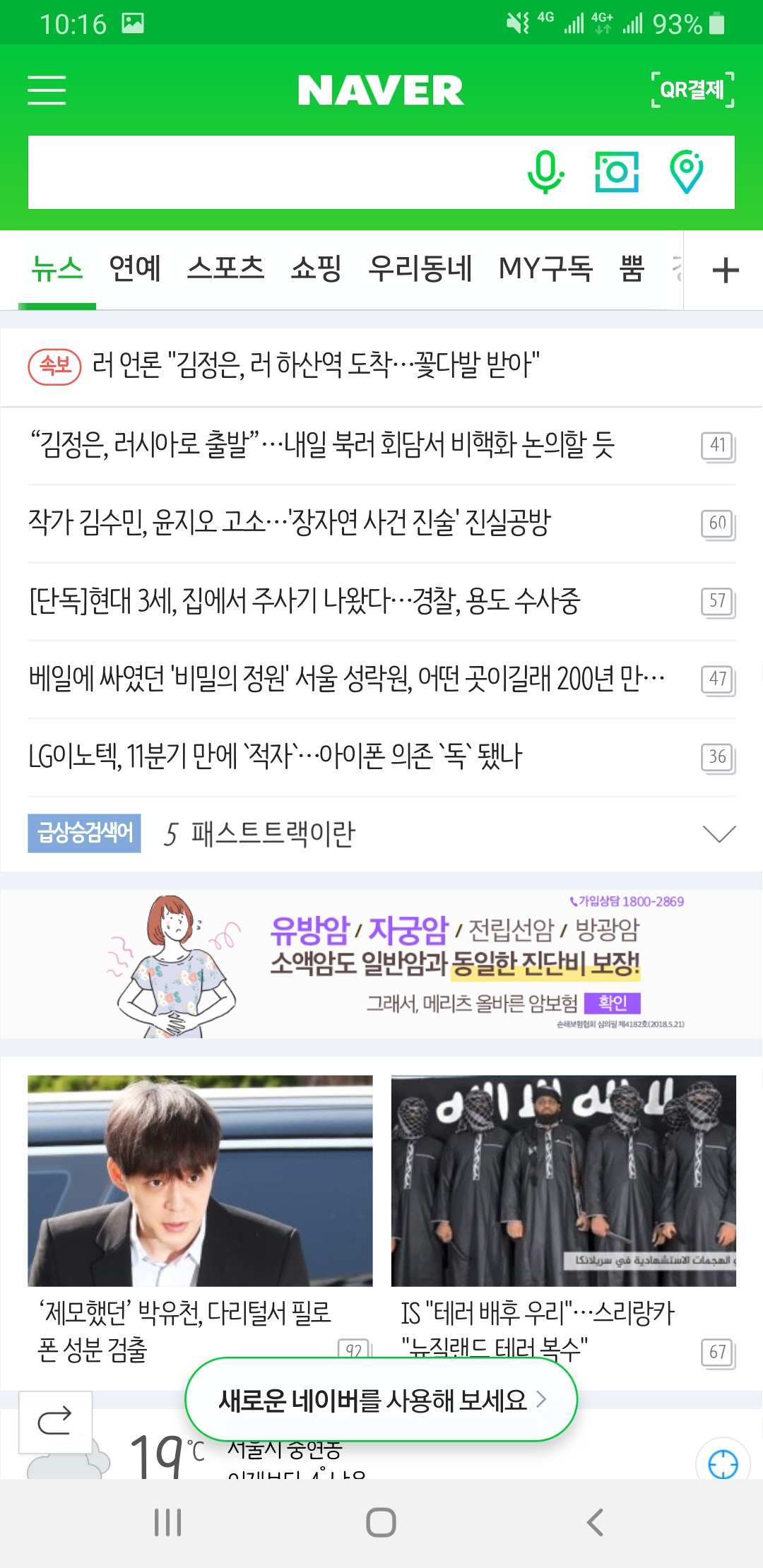 4월 초부터 네이버 메인 화면이 그린닷과 검색창만 있는 깔끔한 화면으로 바뀌었습니다. 마치 구글처럼요. 한성숙 네이버 대표는 4월 25일 1분기 실적 발표 콘퍼런스콜에서 이날 1분기 모바일 페이지 개편 이후 74% 이용자가 바뀐 화면을 사용 중이라고 밝혔는데요.
