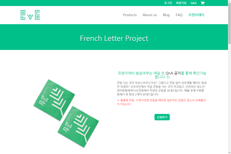 이런 상황에서 한국에 청소년 전용 콘돔 자판기가 등장하고야 만 것이다. 소셜벤처기업 ‘인스팅터스’가 직접 개발한 콘돔을 청소년에게 무료로 배달해주는 ‘프렌치 레터(French Letter·콘돔의 영어식 은어)’ 사업의 일환으로 설치된 자판기다. 해당 기업은 오프라인에서 콘돔을 사는 것이 부끄럽고 곤란한 청소년에게 매월 초 우편으로 콘돔 2개씩을 보내주는 사업을 하고 있다. 그러다 우편은 청소년이 다가가기 어려운 방식이라는 생각에 자판기 보급에 나서게 된 것이다.