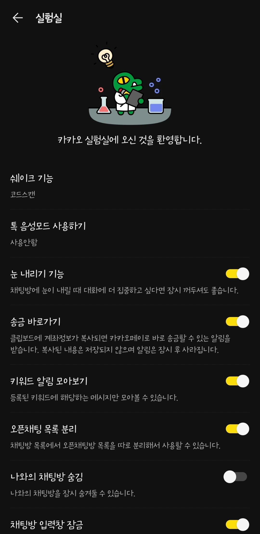 업데이트한다고 곧바로 셰이크 기능을 쓸 수 있는 건 아닙니다. 설정에서 실험실 메뉴로 들어가세요.