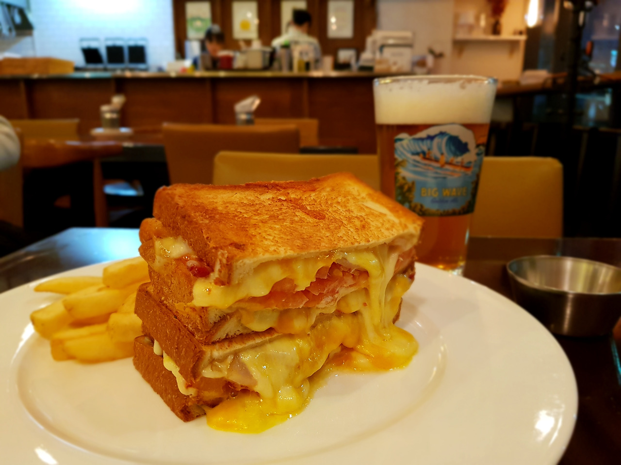 점심에는 치즈몬스터 샌드위치, 봉골레 파스타, 까르보나라가 잘 나가고요. 저녁에는 관자 초리조 요리와 스테이크 등이 인기예요.