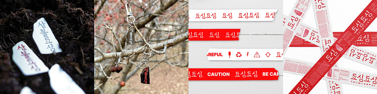 그리고 산불됴심의 빨간색 글씨가 일상생활에서 너무 과하게 느껴질 수도 있으니 글자색을 하얀색으로 바꾼 버전을 만들었었는데 이에 맞춰 뱃지도 2종류, 키링도 2종류, 박스테이프도 2종류, 디자인하다 보니 마스킹테이프는 4종류... 가 되었고 각 제품의 패키지도 만들어야 했기에 하다 보니 생각보다 큰(개수가 많아지는) 프로젝트가 되었다. 콘셉트 와 디자인 기조를 단순하게 정리하지 않았더라면 정말 이도 저도 아닌 엉망진창 프로젝트가 (다시) 될 뻔하지 않았을까 라는 생각을 했다. 제출하는 프로젝트의 이름은 ‘됴심됴심 산불됴심 꾸러미’로 정했다. ‘됴심’이라는 표현을 강조하며 반복함으로써 요즘 세대에게는 귀여움이 먼저 느껴지는 문화재임을 알리며, 세트 대신 ‘꾸러미’라는 표현으로 전통을 콘셉트로 하는 브랜드라는 점을 나타내고 싶었다. 이렇게 디자인과 프로젝트를 완성하는 데 너무 많은 에너지를 써서 좀 기진맥진했지만 어쩐지 직접 제출하고 싶어 경북 문경까지 다녀왔다. 우여곡절 끝에 제출을 마쳤는데 수상여부와 상관없이 돌아오는 길에 매우 뿌듯함을 느꼈다.