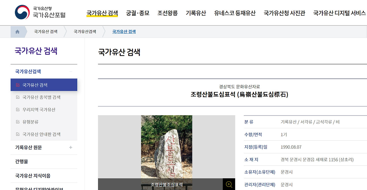 역시나 조사해 보니 ‘MZ세대에게 귀여운 척하는 문화재’로 알음알음 입소문을 타고 있던 ‘산불됴심’ 비석의 정식명칭은 ‘조령산불됴심표석’으로 경상북도 문화재 자료 제226호로 지정되어 있다.