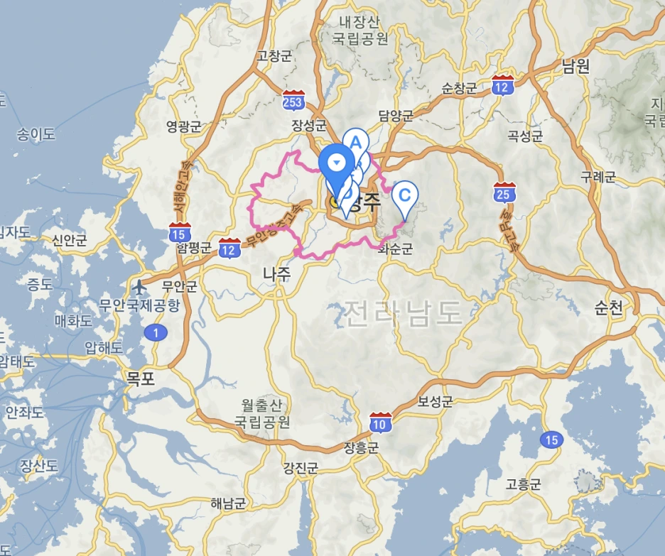 장성, 담양, 화순, 나주, 함평 이 바로 근접해 있는 시골이다.