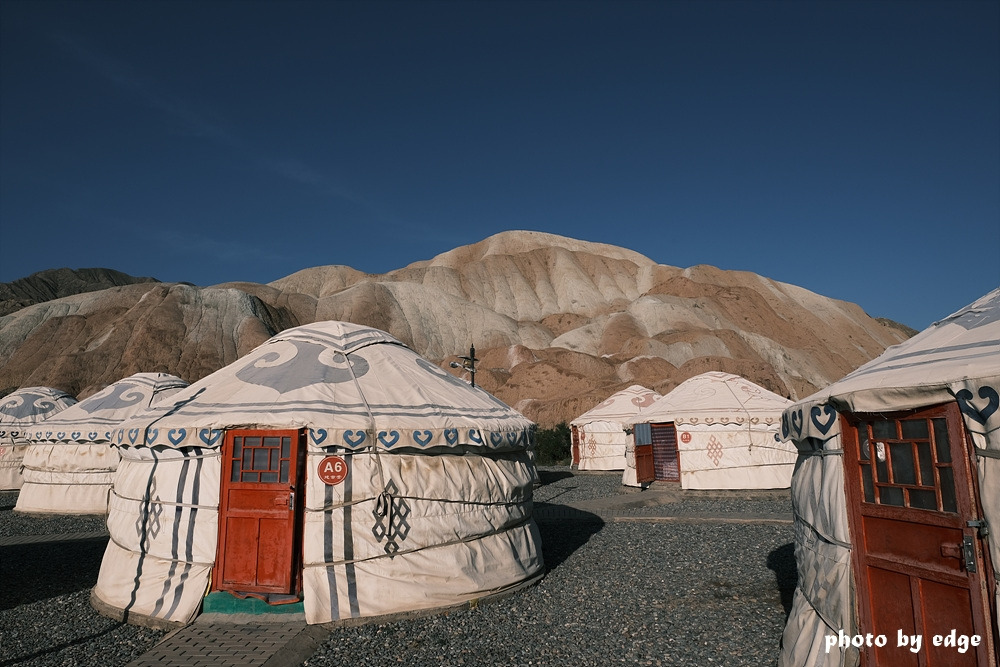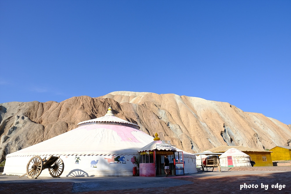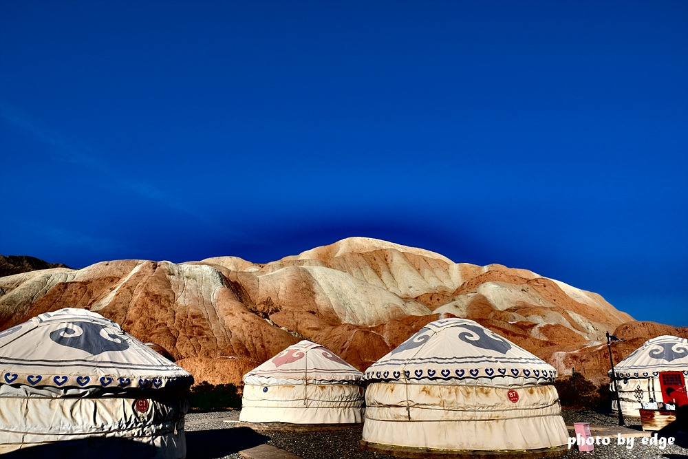 장액의 아름다운 칠채산을 보고 나니 이런 곳에서의 백패킹이나 캠핑을 자연스럽게 꿈꾸게 되었지만 현재는 불가능하였기에 근처에 있는 게르 형태의 숙박시설에서의 1박으로 아쉬운 마음을 달래 본다. 꿩대신 닭 이런 생각으로 1박을 생각했지만, 생각보다 너무 만족스럽게 캠핑의 느낌을 느낄 수 있었던 글램핑. 즐겁고 편안하면서 낭만적인 시간을 보낼 수 있었고 무엇보다 배경이 무려 칠채산의 단하지모 지형이란 것이 너무나도 아름다웠다.