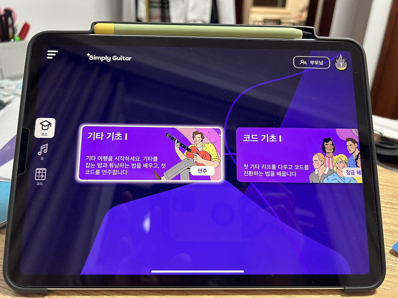 이제 연습만 해서 멋진 곡을 연주만 하면 되겠구나 싶은데 기타를 만져보던 딸이
