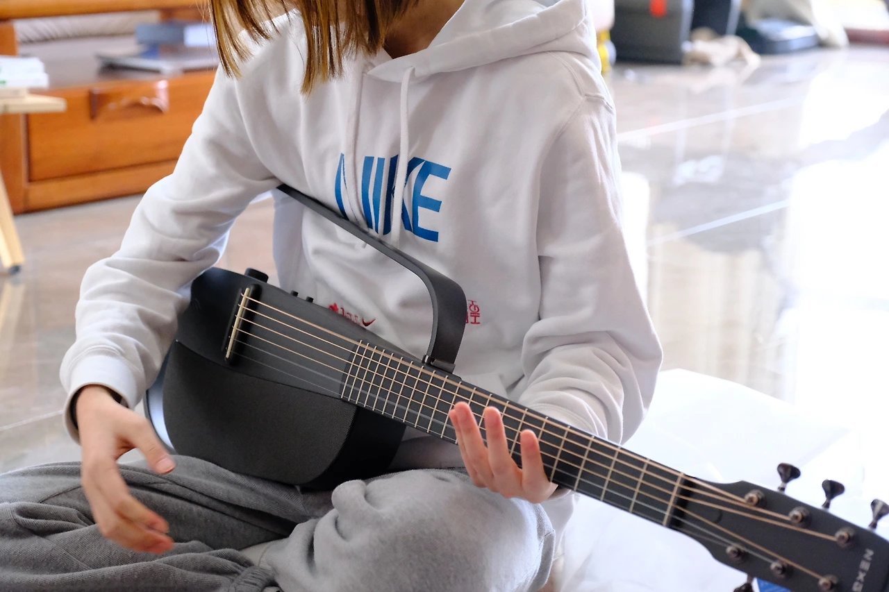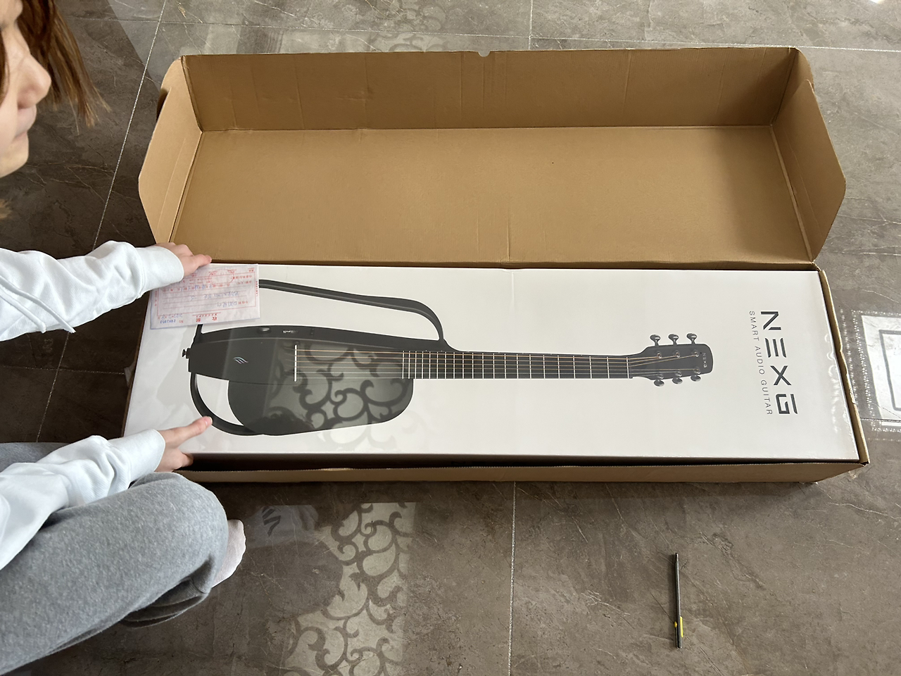 스마트 기타 라는 이름이 쓰여 있고 생긴 것도 스마트해 보이긴 했다. 몇 번 현을 켜 보다가 나름 직관적으로 만들어진 전원 버튼을 눌러 전원을 올리고 스피커를 통해 띠리링 하는 소리가 울려 퍼지는데 그때는 가족들 다들 ‘오오~’가 나왔다.
