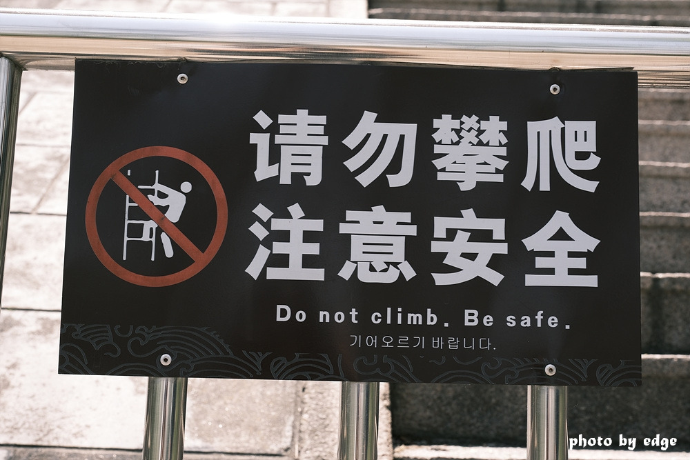 망월루 가기 전에 어로(御路,yulu)라는 이름의 긴 계단이 있는데 망월루를 거치지 않고 바로 질러서 갈 수 있는 길이다. 많은 계단에 아찔한 느낌이 있지만, 이곳으로 오르지 말라는 안내문에 한글로 번역해 둔 '기어오르기 바랍니다'라는 정 반대의 한글이 쓰여 있는 걸 보고 헛웃음이 지어진다.