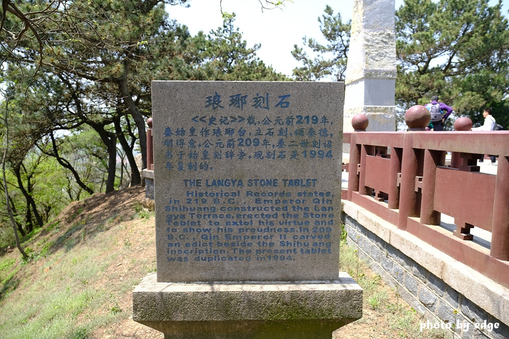비석의 내용은 진왕조의 공덕을 찬양하는 내용과 함께 도량형이나 법가 사상 같은 내용이 적혀 있다고 한다. '사기'에 따르면 3만 호의 백성을 랑야대 아래로 이주시키고 그들에게 부세와 요역을 12년간 면제해 주었다고 하니 이곳을 얼마나 특별하게 생각했는지 짐작할 수 있다. 더군다나 불로초의 희망까지 볼 수 있었으니 그에게 이곳은 어쩌면 그의 투쟁의 역사에서 잠시나마 쉼을 가지면서 또 다른 희망을 엿볼 수 있던 그런 장소가 아니었을까?
