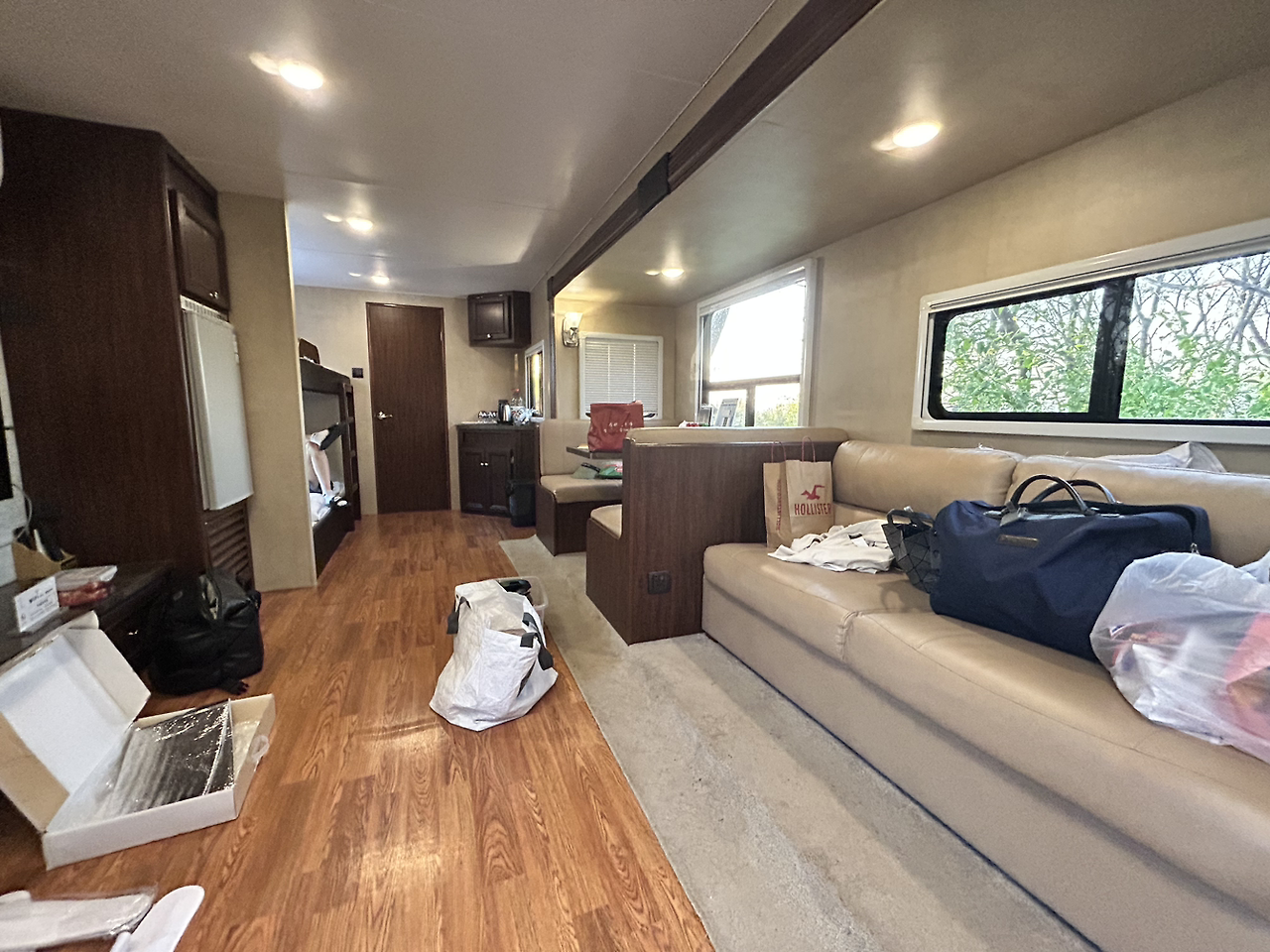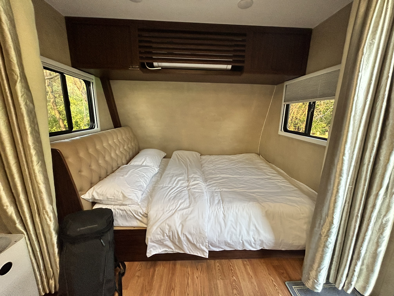 숙영지는 현재(2023년 여름) 기준으로 10대의 카라반이 있고 8대는 소형, 2대는 대형 카라반이 있다. 대형 카라반의 경우는 별도의 트윈베드 침실이 제공된다고 한다. 각 카라반은 총 4개의 침대가 있어서 4인 가족이 나름(?) 편하게 사용할 수 있고 침대는 1.5m x 2m 더블침대 1개, 0.9m x 2m의 이층침대가 있고 1.1m x 1.5m 소파와 테이블 조합으로 식사공간이 있다.