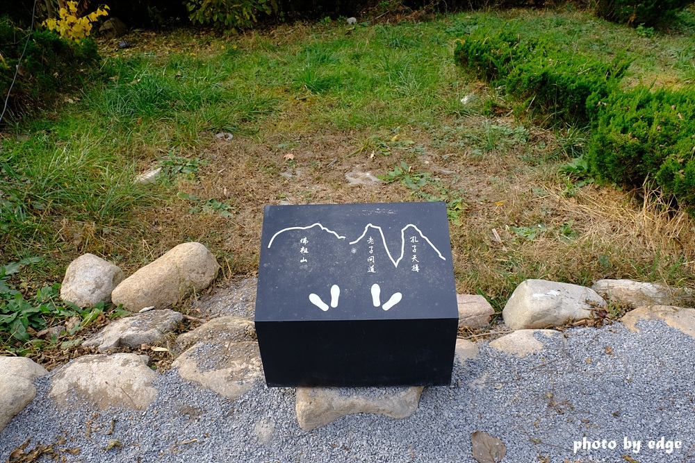 예전에 석문으로 인해서 말들이 도망가지 않고 안쪽의 풀이 무성해서 말을 사육하는데 적합해서 영부영 마장이 세워졌다는 마장터를 보면서 지나가면 삼성산이라고 이름 붙은 장소가 나온다. 비석을 보면 부처님산 (佛祖山, fozushan), 노자의 길을 묻다는 뜻의 노자문도 (老子问道, laoziwendao), 공자천기 (孔子天机, kongzitianji)을 한눈에 볼 수 있다는데, 설명을 들어 보면 불경을 읽는 모양을 한 부처님 석가모니를 닮은 산은 부처님산(불조산), 산과 큰 바위가 마치 노자를 연상케 한다고 해서 노자가 설교하는 산이라고 하고(노자문도), 두루마기를 걸친 공자의 모습을 한 오른쪽 바위는 공자천기산이라고 한하는데 솔직히 꿈보다 해몽이 더 좋은 느낌이라서 사실 크게 공감은 되지 않는다.