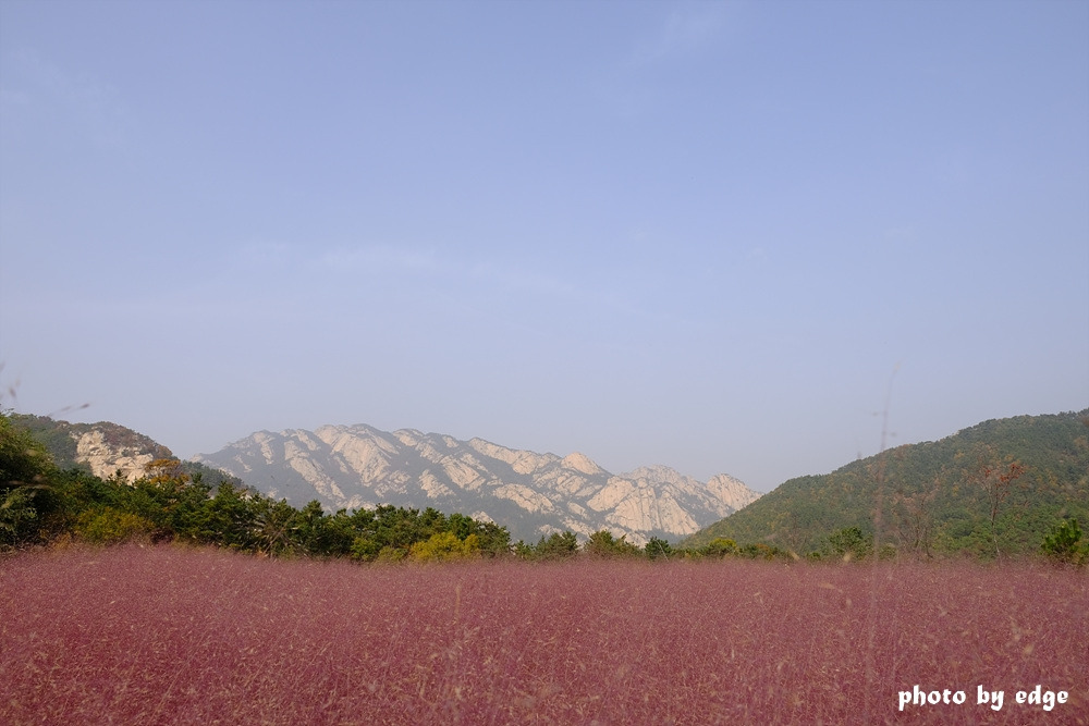 쿤위산(곤유산)의 석문리경구에서 제일 기억나거나 혹은 제일 사진 찍기 좋은 장소를 꼽으라면 당연히 이곳 무봉화해가 일품이다. 산림 과수원을 개간해서 만든 것으로 2012년부터 시작했는데 매년 4~5월에 벚꽃, 9~11월의 핑크뮬리를 보는 풍경이 아름답다고 한다. 방문했을 때는 핑크뮬리가 가득이었는데 그 특유의 화려하지만 정갈한 색감의 뮬리가 쫙 펼쳐져 있는데 쉽게 발걸음을 옮길 수가 없었다.