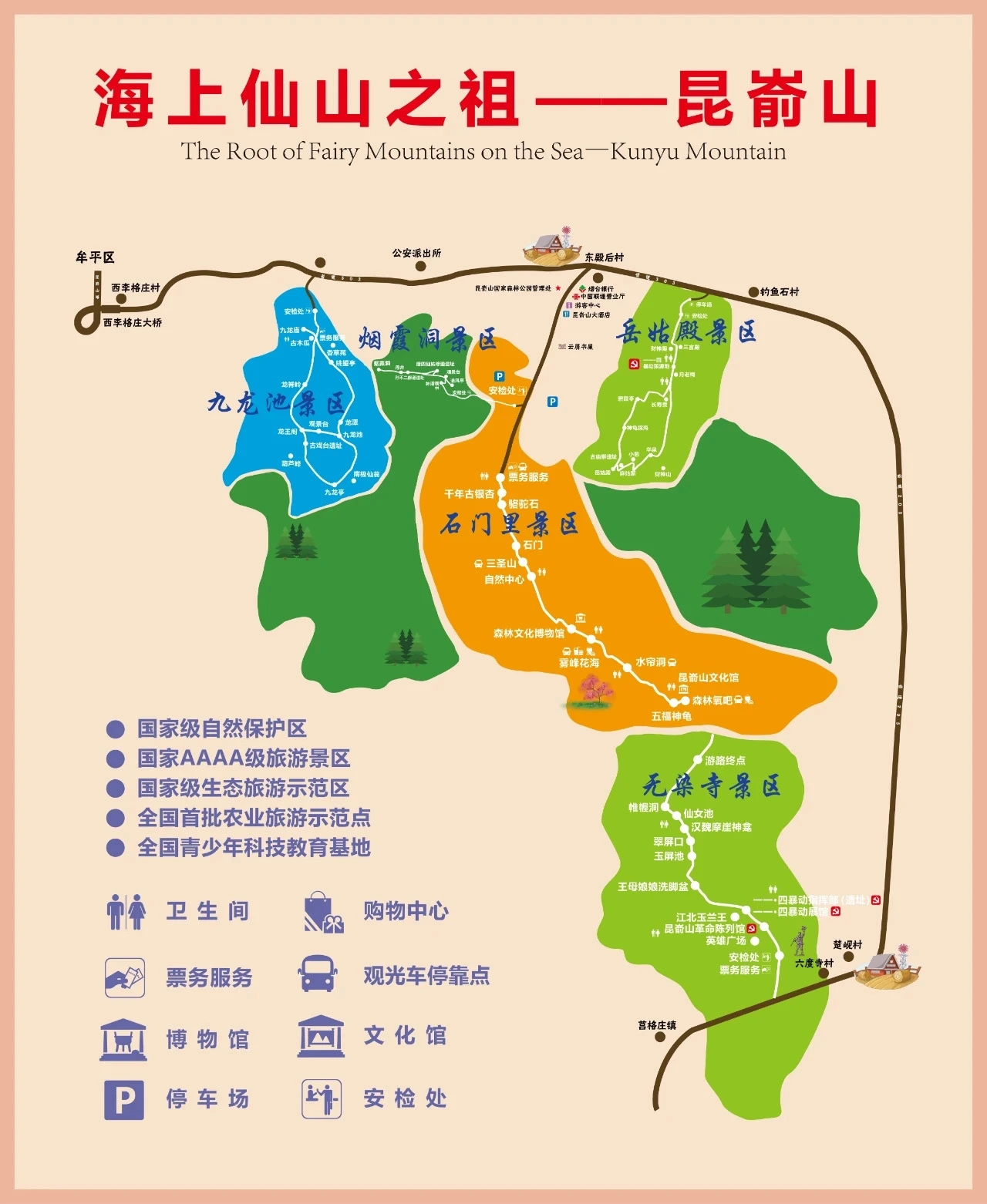 쿤위산(昆嵛山,kunyushan)은 한자어로 곤유산으로 읽히며, 산동성의 명산 중 하나로 연태시와 위해시의 경계에 위치해 있다. 도교 전진파의 발상지로 칭다오에 있는 라오산(崂山,laoshan)과 함께 도교의 명산으로 사랑받고 있다. 쿤위산은 총 5개의 코스로 운영되고 있는데 방문한 때는 다른 곳은 자연보호등의 목적으로 다른곳의 입산이 금지되어 있어서 석문리관광지(石门里景区)를 가게 되었다. 일반적으로 한국인들은 쿤위산 정상(태박정) 가기 위해서 구룡지경구 코스를 많이 하거나 산행의 느낌을 좀 더 즐길 수 있는 창산봉(672m)를 많이 하게 되지만 중국의 산은 자연보호나 기타 목적에 의해서 별도의 공지 없이 혹은 공지가 외국인은 알기가 힘든 경우가 왕왕 있어 계획을 세운다면 반드시 가기 전에 방문이 가능한 코스를 확인하고 계획을 세우는 게 좋겠다.