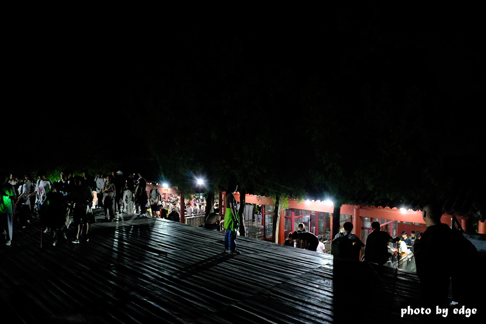정상에 다가설수록 모이는 사람들이 많아져 정상으로 가는 가장 큰 광장인 남천문(南天门)과 천가(天街)는 다음날 일출을 보기 위해서 좀 더 올라가는 사람과 이곳에 머물렀다가 올라가려는 사람들로 북새통을 이루고 있다.