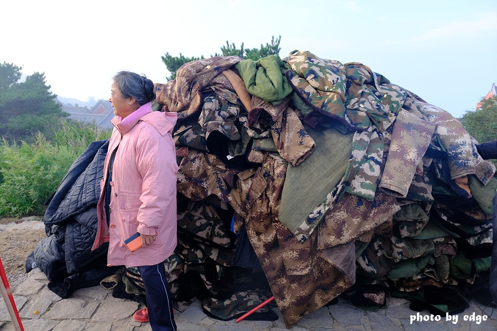 옷은 100 RMB 보증금에 30 RMB로 빌리게 되는데 나중에 알게 된 사실인데 사람이 많을 때는 빌리는 건 문제가 없는데 반납자체가 너무 어려워서 보증금을 받지 못할 수밖에 없는 경우가 생길 수도 있다. 농담이겠지 생각할 수도 있는데 움직이기도 어려워서 몇 발 움직이는데도 한참 걸리는데, 빌린 곳에 가서 정신없이 큰소리로 이야기하며 보증금을 받는 게 외국인으로서는 더욱 어려우니 혹시 야간 산행을 생각한다면 계절을 고려하여 적당한 수준의 우모복을 미리 가져가는 게 제일 맘 편할 것 같다는 생각이 든다.