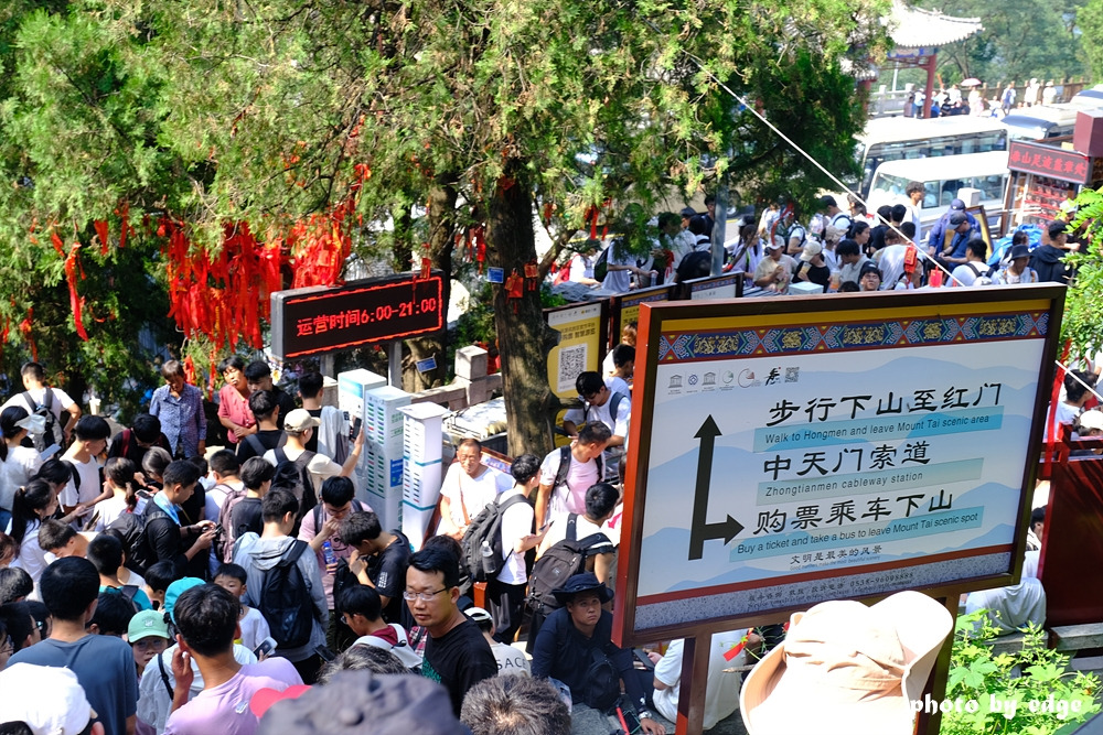 하늘길이라는 이름의 천가(天街tianjie)는 푸른 하늘빛과 잘 어울리게 솟아 있지만 그 밑으로 하산을 하려는 사람들의 머리수를 보면 기가 질려버린다. 지금의 상황을 영상으로 찍어 중국 친구한테 보내면서 오늘이 혹시 중국의 특별한 날인 건가?라는 질문에 전혀 특별한 날이 아닌 태산은 원래 사람이 많다는 말로 답변이 대신 왔다. 대학생 개학이 다음 주라서 그런가? 하는 내용과 함께.