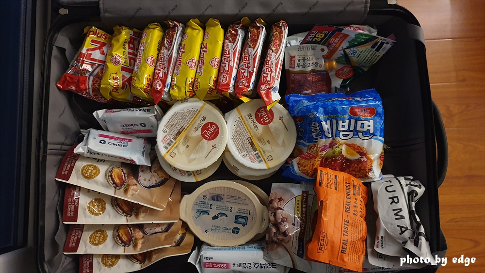 캐리어 한가득 담아 온 먹거리가 있어 배급 음식이 맘에 안 들면 언제든지 MSG가 첨가되어 있는 간편식으로 먹을 준비가 완료되었다.