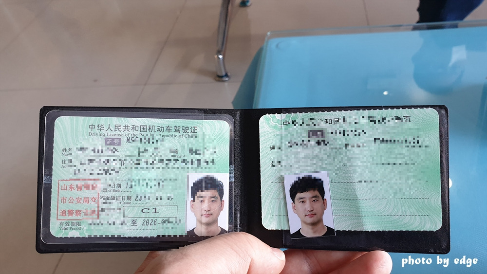 중국 운전 면허증. 최근에 한국은 앱으로도 지원되고, 영문명이 함께 기입되는 등 정보와 외관에서 여러 형태의 운전면허가 존재하는데 비하면 지극히 아날로그적인 운전 면허증이다.