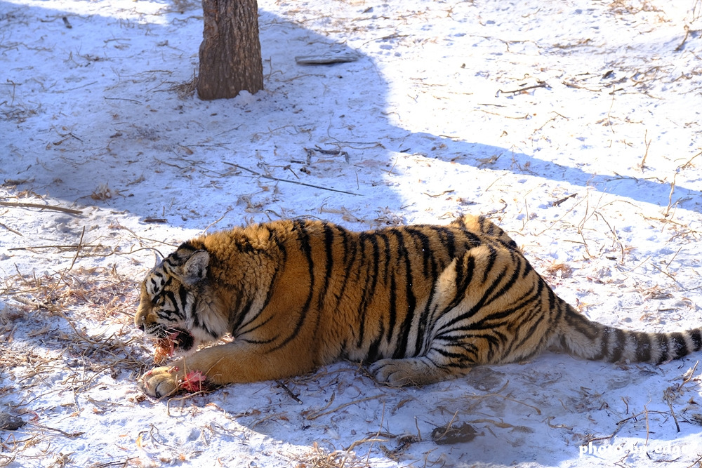 하얼빈의 동북호림원은 사파리 버스를 포함해서 천천히 보행로로 산책하면서 사진도 찍고 하면 약 2시간 정도가 소요된다. 대부분이 호랑이고 일부 사자, 라이거도 있다고 하지만 메인은 호랑이 먹이 주고 먹이를 먹는 모습을 가까이에서 보는 것이다. 그러다 보니 아무래도 고기를 먹는 야생 동물의 습성이 재미로만은 볼 수 없는 부분들이 있어서 불편할 수는 있지만 어찌 보면 이곳이니까 일반인들이 안전상이든 혹은 동물보호? 등의 사유로 쉽게 볼 수 없는 경험을 할 수 있는 유일한 곳인 것 같다.