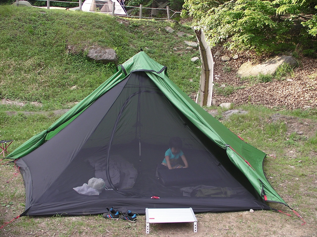 제로그램 초창기 빠삐용1텐트. 가볍고 빠른설치라는 장점과 동시에 비대칭구조로 인한 텐션등의 문제점도 있었던 모델. 세대를 거듭할수록 완성도를 높이는것도 전문업체의 노하우.