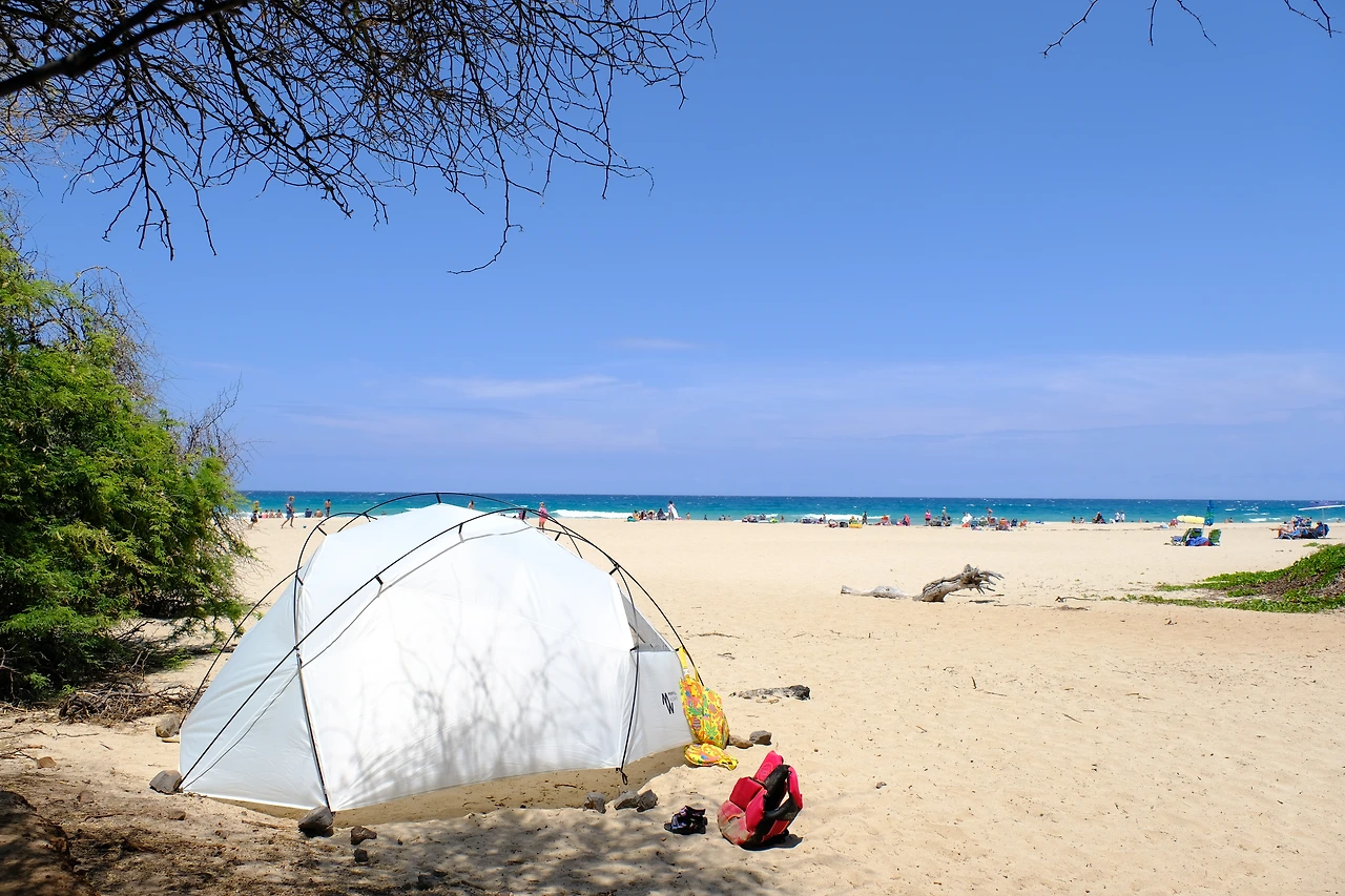 미니멀웍스 글래머 쉘터 타이벡 버전. 차광력이 뛰어나 여름철 해변에서 특히 활용도가 높다. in 하와이