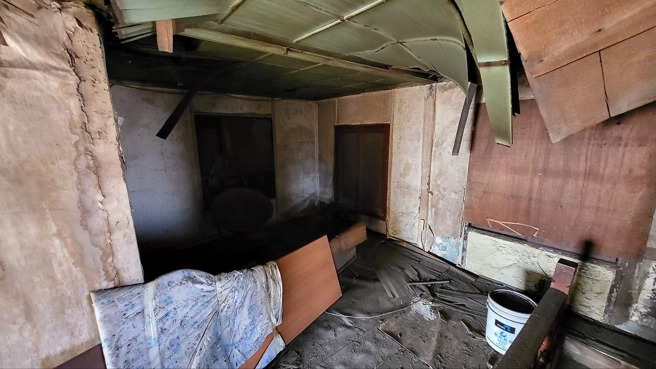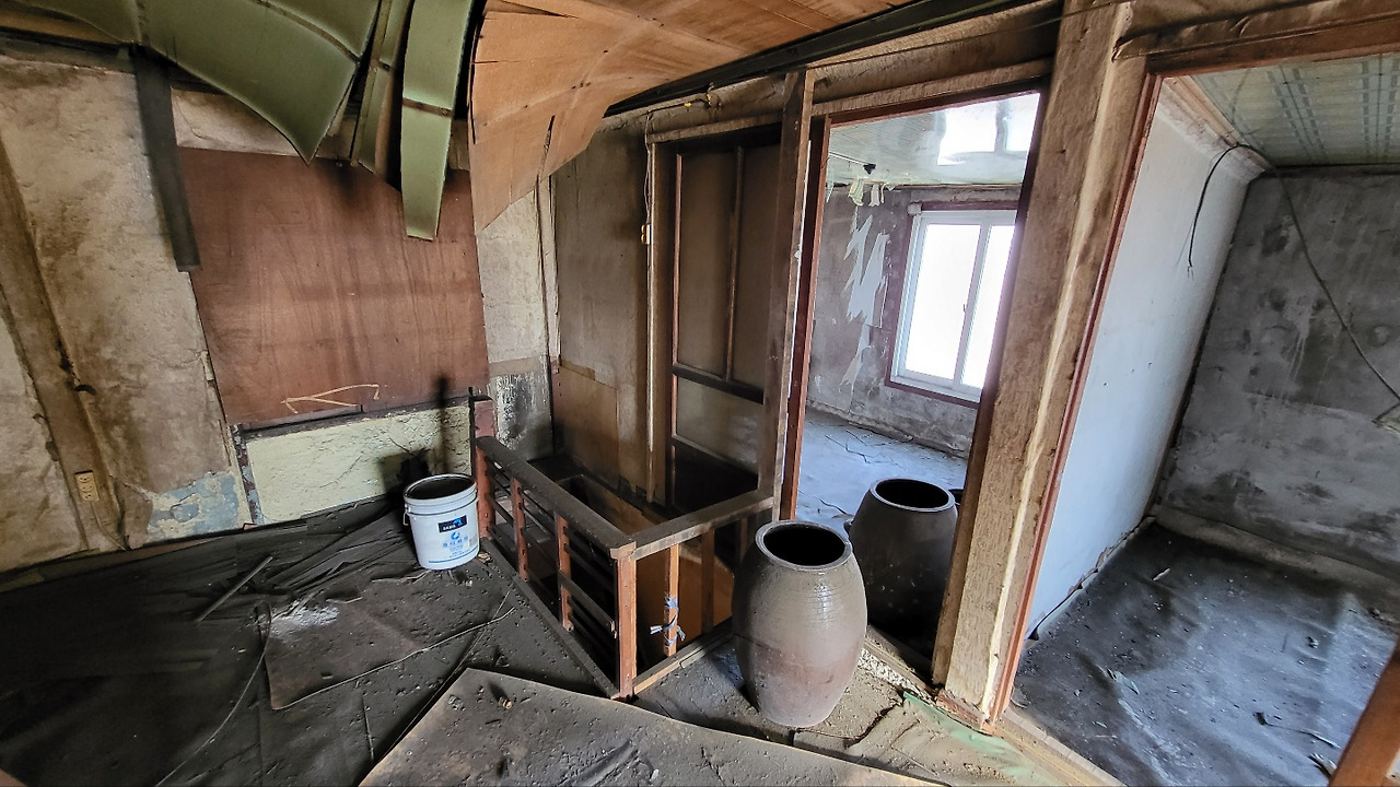 역시나 내부는 보나 마나 귀신의 집같이 느껴질 정도로 엉망이었고 세월의 흔적들은 거스를 수 없었다. 수년간 사람도 살지 않았고 상가로도 이용되지 못한 폐가 수준이었다. 이야기를 들어보니 수십 년 전에는 슈퍼마켓이었다가 이후에는 식당으로 쓰이다가 지금은 안 쓰는 공실이 되었다고 했다.