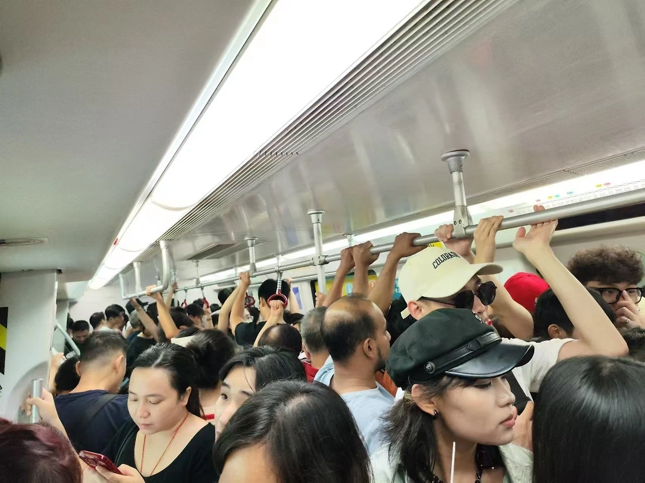 한국 지하철은 어땠을까. 한국도 출퇴근 시간이면 붐비긴 하지만, 상하이만큼 밀집되지는 않는다. 공간이 넉넉하다 보니 사람들 사이에 조금 더 거리를 둘 수 있다.